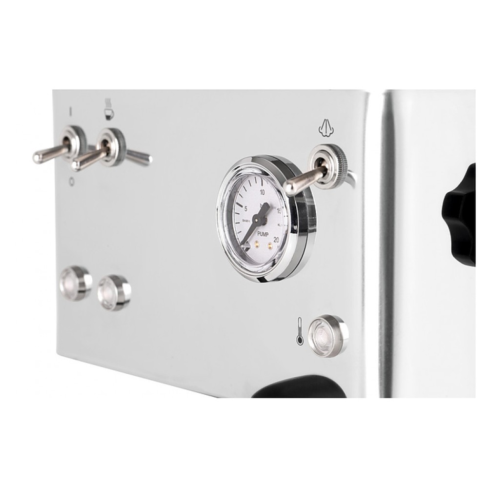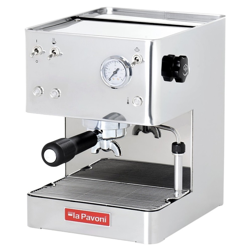 Рожковая эспрессо кофемашина La Pavoni LPMCBS01EU серии Casabar используется для приготовления кофе и напитков на его основе в домашних условиях. Модель оснащена вибрационной помпой, капучинатором в виде трубки с паровой насадкой, подставкой для чашек, кабелем питания с вилкой и расположенной на фронтальной стенке электромеханической панелью управления. Корпус прямоугольно ориентированной формы выполнен из нержавеющей стали с серебристой поверхностью и глянцевой полировкой, заварочный блок – из латуни с хромированной поверхностью, ручка регулятора и поддон каплесборника – из черного пластика, решетка подставки, трубка и насадка капучинатора – из нержавеющей стали, опоры – из черного полимера.