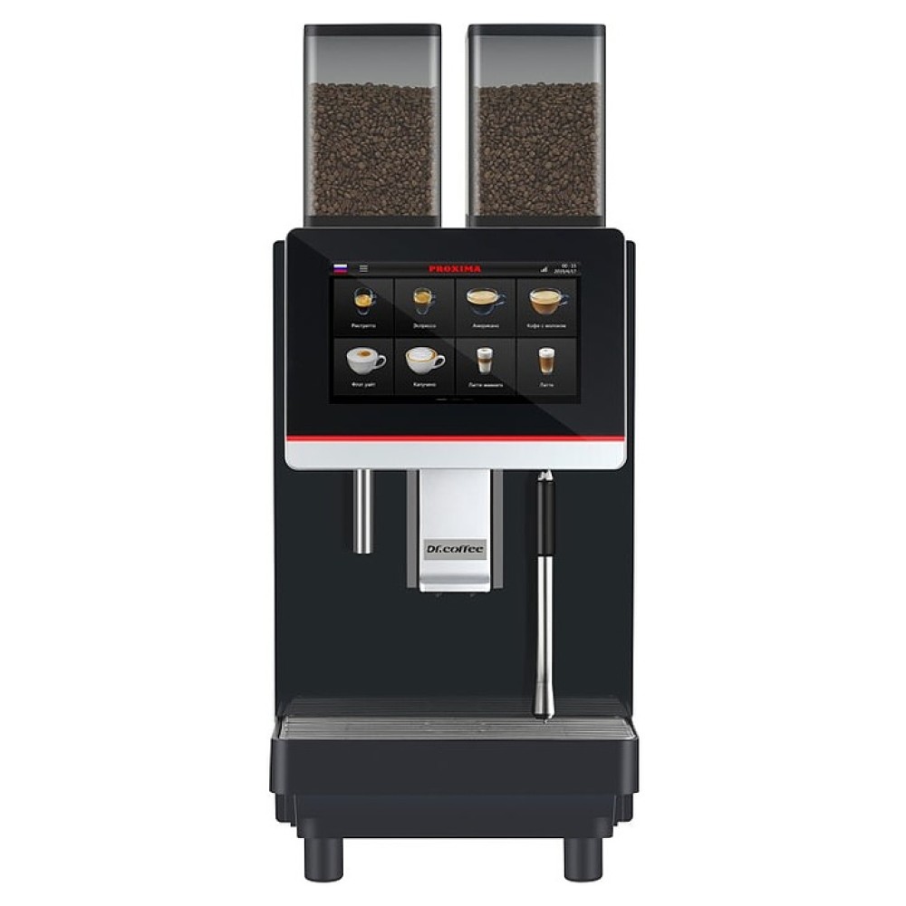 Кофемашина Dr.coffee Proxima F3 HT используется на предприятиях общественного питания и торговли для приготовления кофе и напитков на его основе. Модель оснащена сенсорной панелью с интуитивно понятным интерфейсом. Корпус, контейнер отработанного кофе, каплесборник выполнены - из пластика, съемное заварное устройство и трубка подачи пара/воды - из металла, жернова – из керамики, бойлеры - из алюминия.