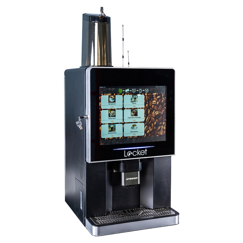 Кофемашина Le vending Locket 307 предназначена для приготовления и продажи американо, капучино, шоколада с молоком, шоколадного латте, ванильного мокко на основе зернового кофе и различных напитков из растворимых продуктов на предприятиях общественного питания и торговли. Корпус выполнен из металла, стекла и качественной пластмассы.