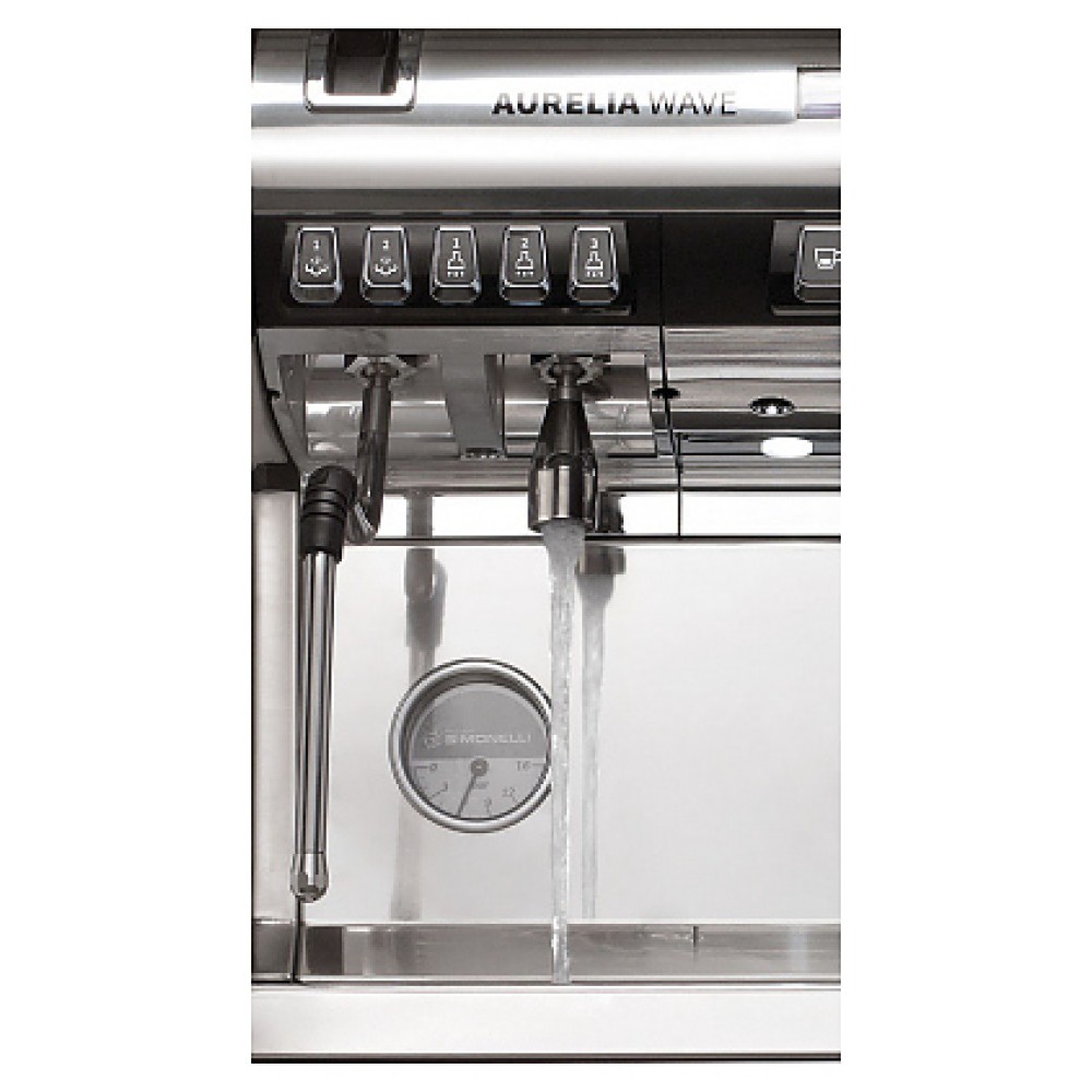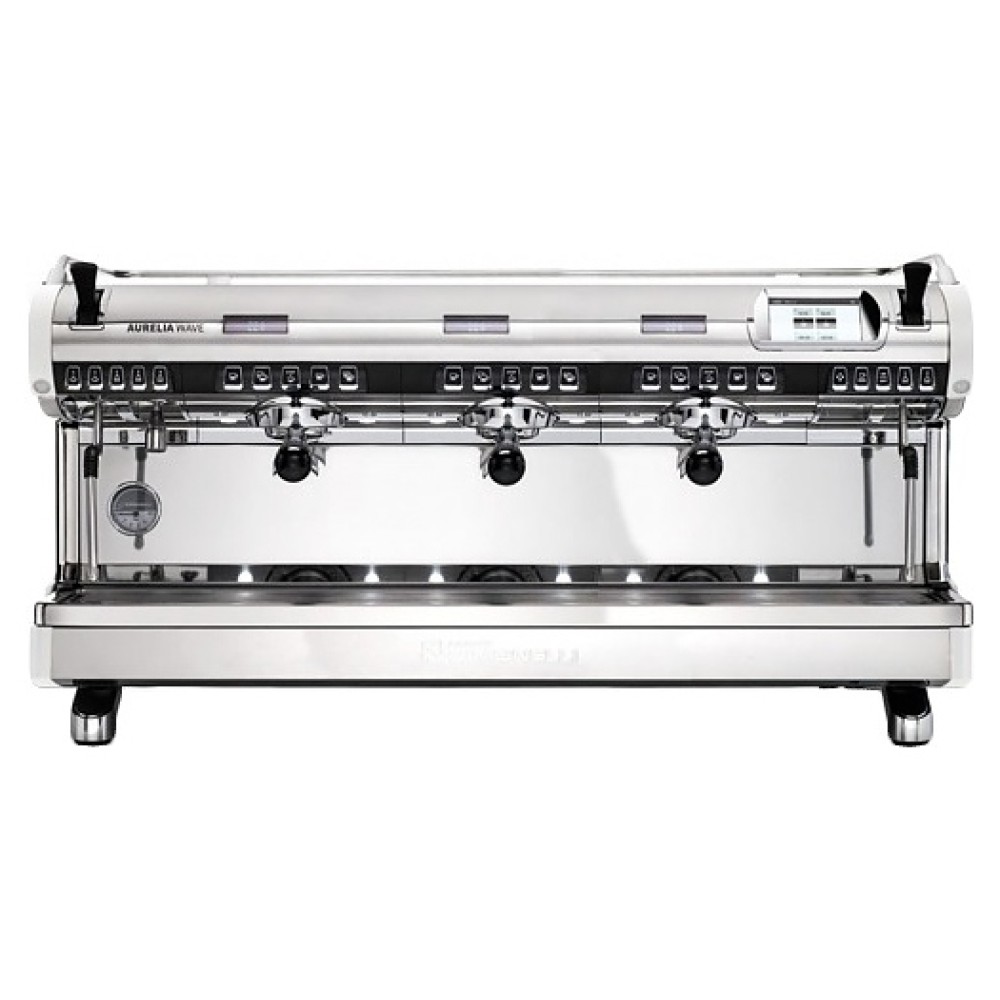 Автоматическая кофемашина Nuova Simonelli Nuova Aurelia Wave T3 3Gr 220V используется в кофейнях, барах, ресторанах и на других предприятиях общественного питания и торговли для приготовления эспрессо и различных кофейных напитков на его основе. Модель оснащена 3 высокими рожковыми кофейными группами, 2 трубками подачи пара, соплом подачи горячей воды легкой очистки, основной панелью управления с многофункциональным сенсорным дисплеем, а также персональными панелями для каждой группы с нажимными клавишами, цифровыми дисплеями и светодиодными индикаторами. Облицовочные панели корпуса, сопла и трубки подачи выполнены из высококачественной нержавеющей стали, паровой бойлер – из меди, декоративные С-образные вставки на боковых панелях корпуса – из ударопрочного АБС-пластика белого цвета.