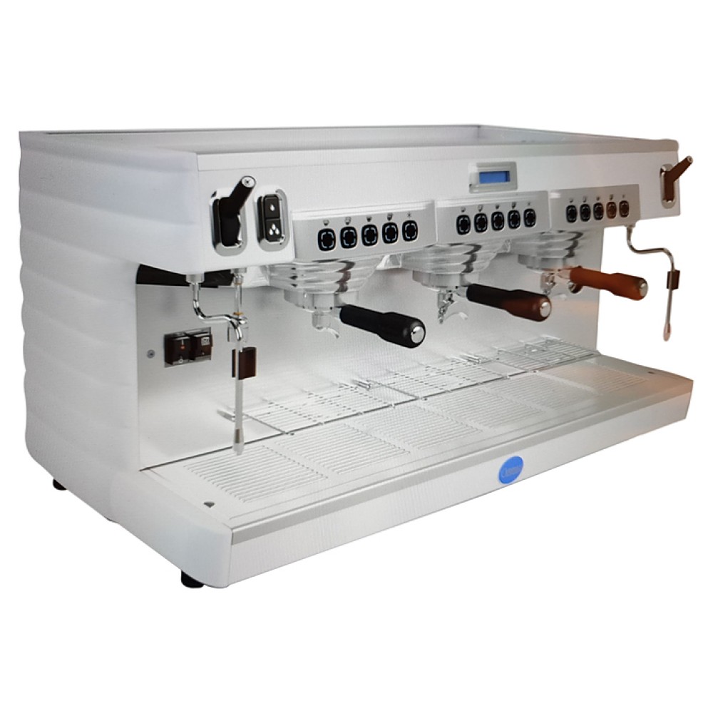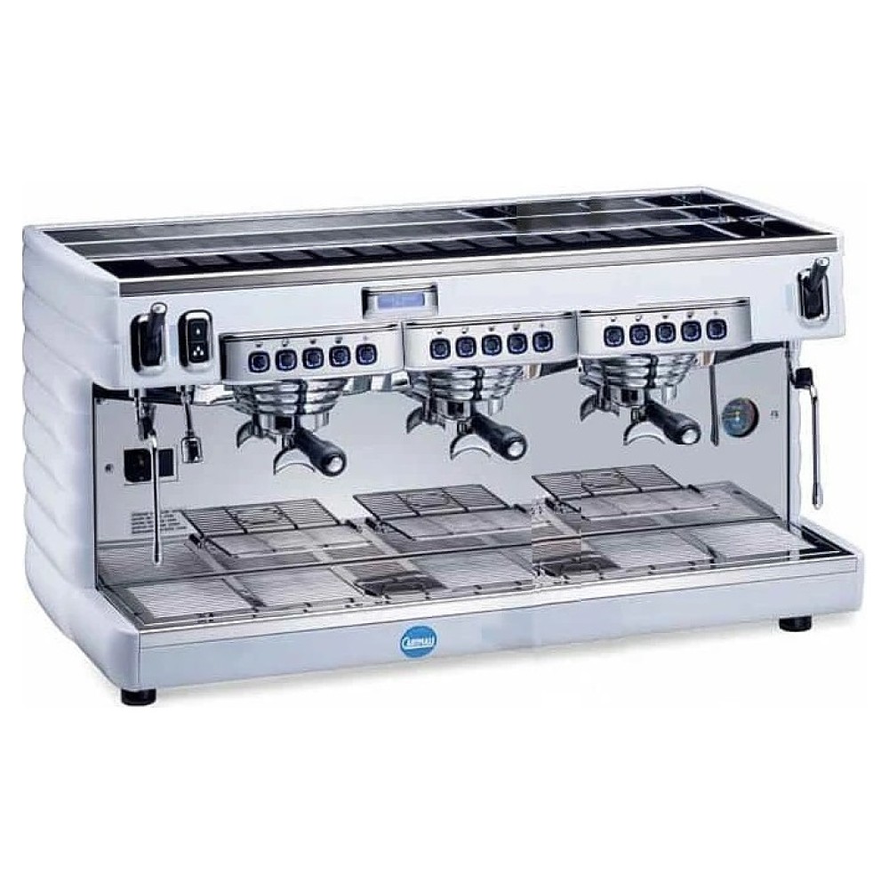 Кофемашина Carimali Bubble 3 Gr высокие группы используется в кофейнях, киосках, барах и ресторанах для приготовления кофе и напитков на его основе. Модель оснащена 5 кнопками управления на группу, буквенно-цифровым дисплеем, бойлером с теплообменником с термосифонической циркуляцией и площадкой для подогрева чашек из нержавеющей стали.