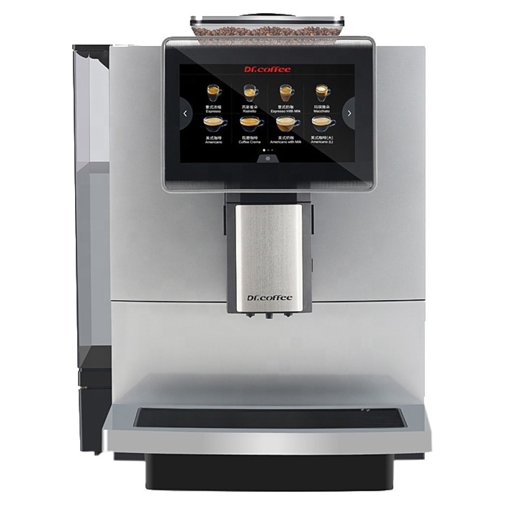 Кофемашина Dr.coffee F10 используется на предприятиях общественного питания и торговли, в офисах, а также в домашних условиях для приготовления кофе и кофейных напитков. Модель оснащена графическим сенсорным дисплеем с блокировкой функции изменения параметров напитков для пользовательского меню. Жернова кофемолки выполнены из керамики, бойлер - из алюминия, контейнеры, каплесборник, заварное устройство - из пластика.