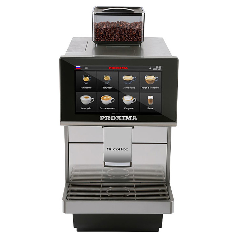 Кофемашина Dr.coffee Proxima M12 Plus используется на предприятиях общественного питания и торговли, в офисах, а также в домашних условиях для приготовления кофе и кофейных напитков. Модель оснащена графическим сенсорным дисплеем с блокировкой функции изменения параметров напитков для пользовательского меню. Жернова кофемолки выполнены из керамики, бойлер - из алюминия, контейнеры, каплесборник, заварное устройство - из пластика.