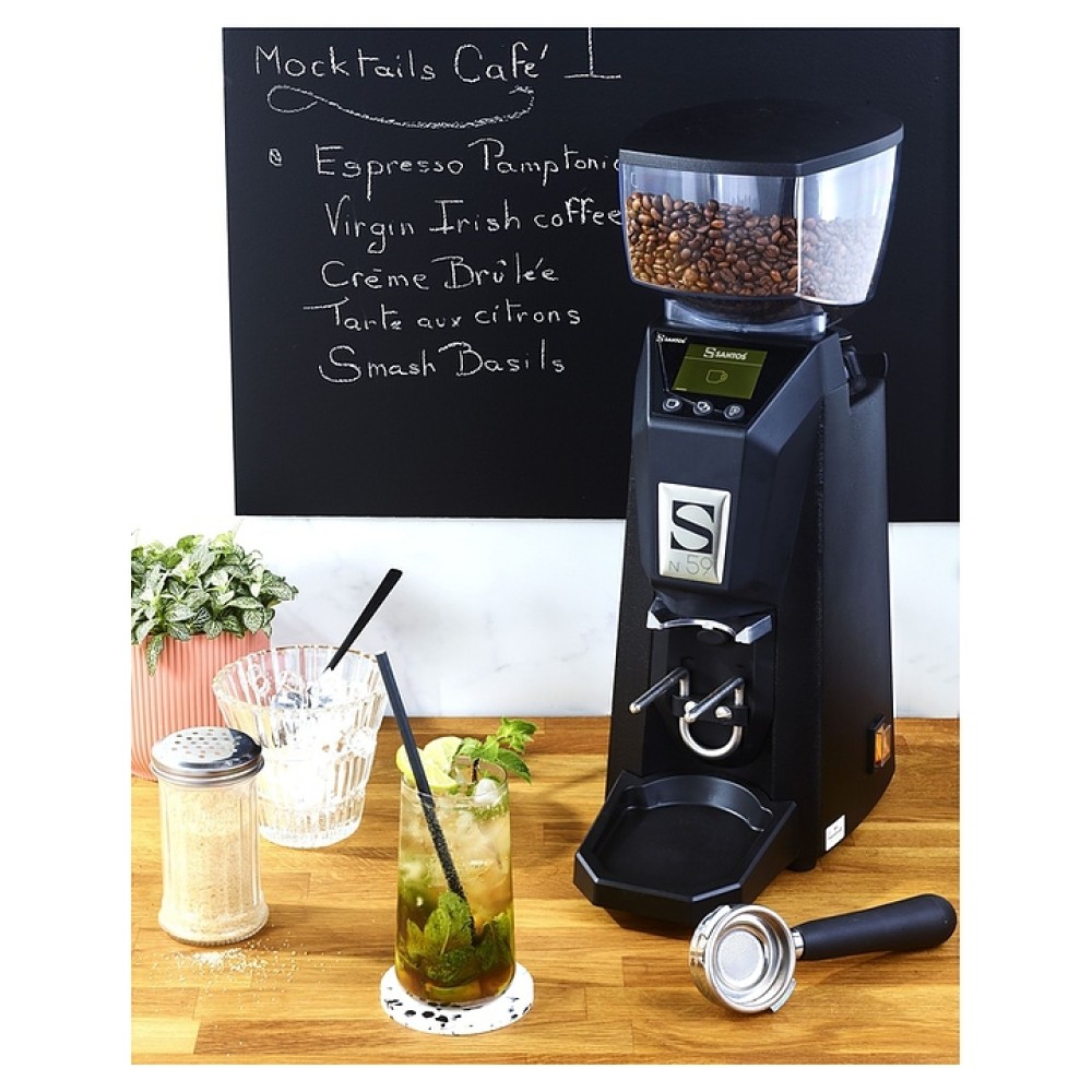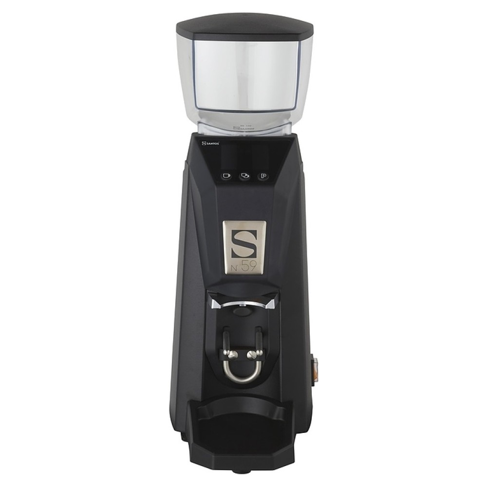 Электрическая кофемолка Santos 59 используется для измельчения кофейных зерен в кофейнях, барах, кафе, на других предприятиях общественного питания и торговли преимущественно совместно с традиционными рожковыми кофемашинами, а также в домашних условиях. Модель оснащена загрузочным бункером с крышкой, кабелем питания с вилкой (Shuko), расположенной на наклонной фронтальной стенке электронной панелью управления с функциональными клавишами и жидкокристалическим дисплеем индикации. Корпус выполнен из алюминия с матовым покрытием черного цвета, жернова – из высококачественной закаленной стали, бункер и крышка – из безопасного для пищевой промышленности пластика.