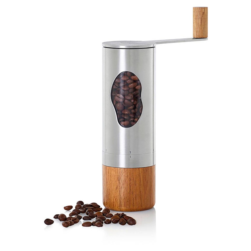 Ручная кофемолка Adhoc Mrs. Bean MC02 используется на предприятиях общественного питания и торговли, в офисах и частных домах для получения молотого кофе из зерен. Изделие выполнено из нержавеющей стали, акрила и дерева акации.