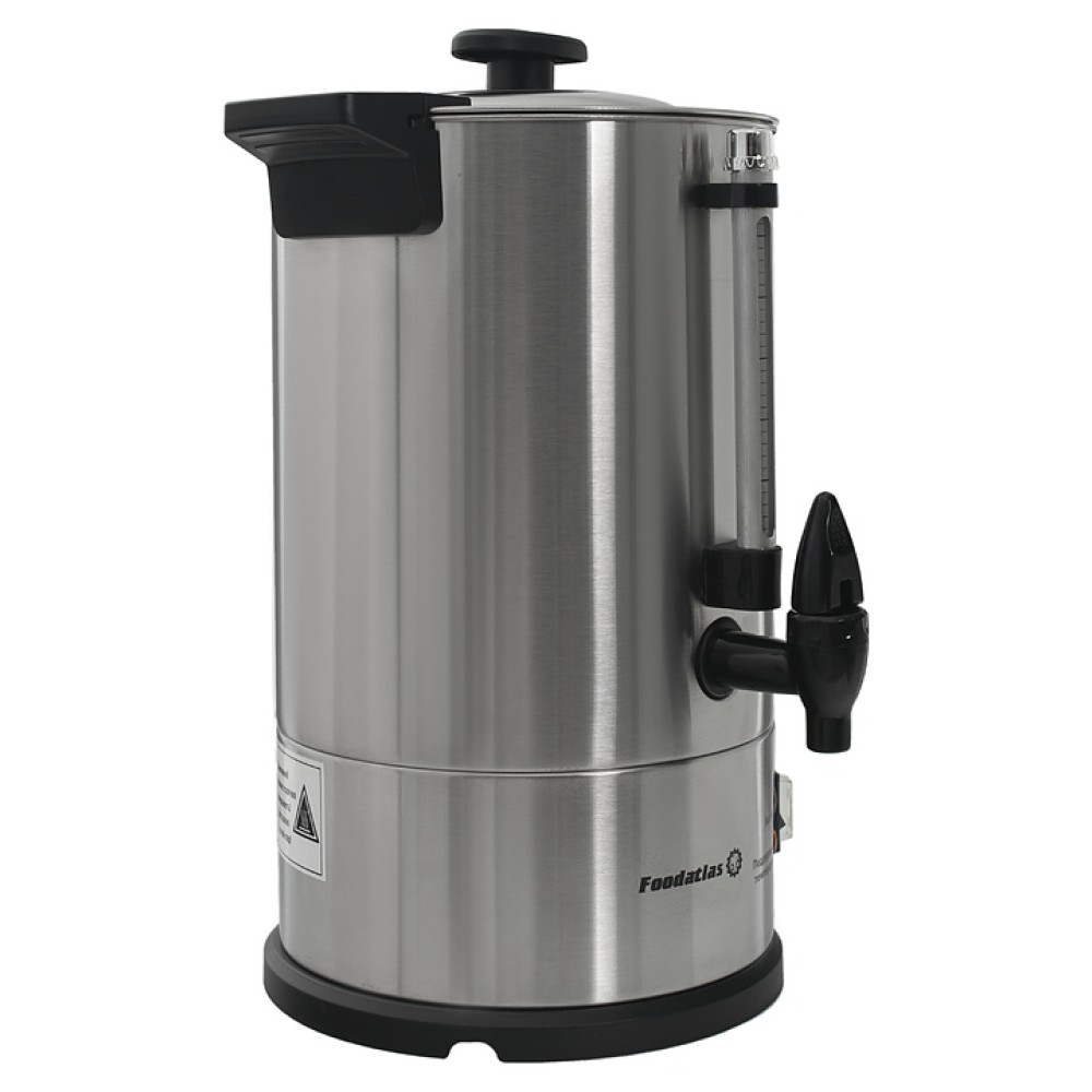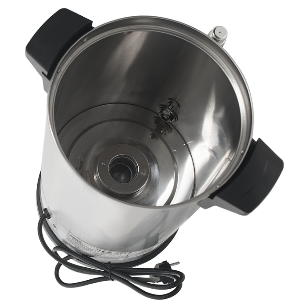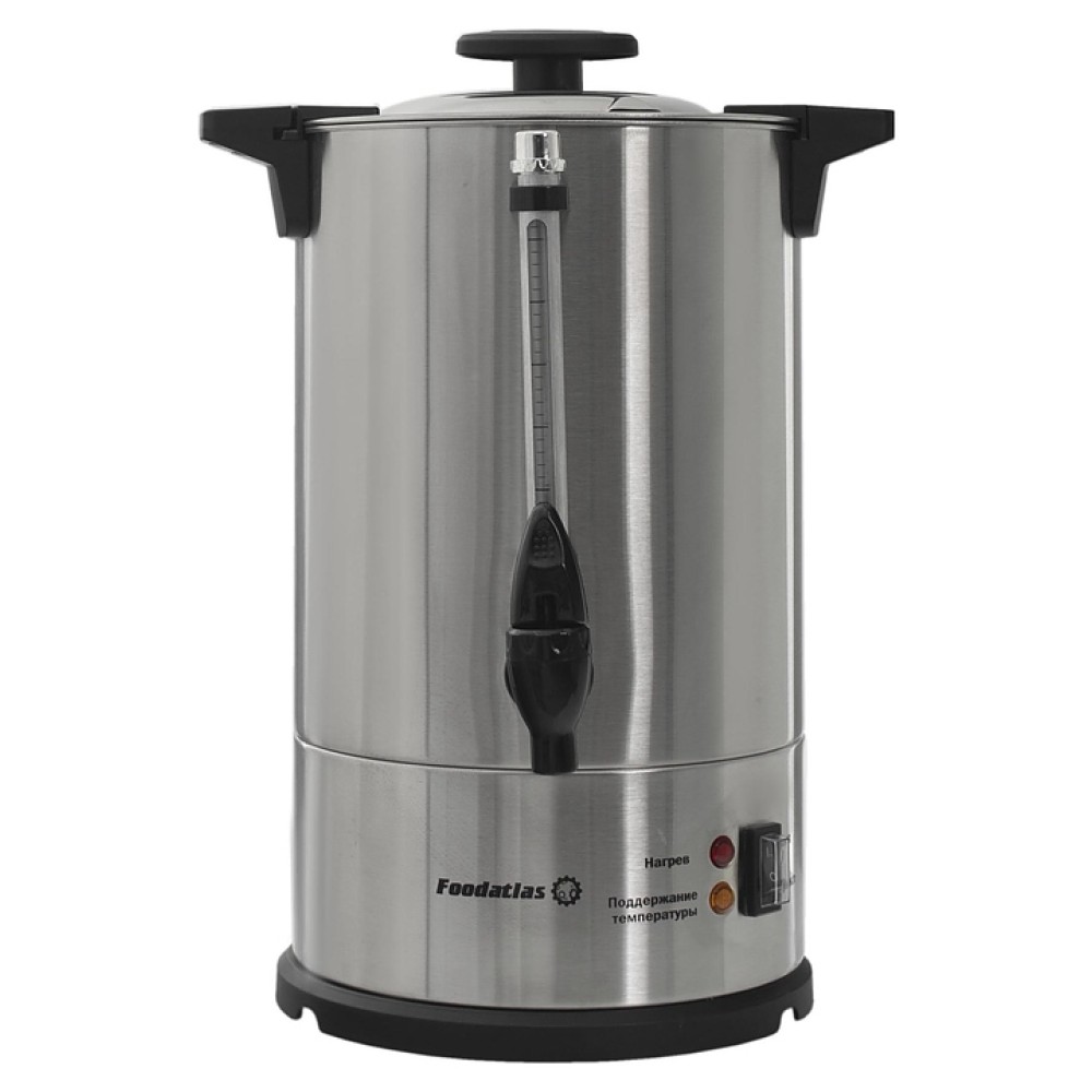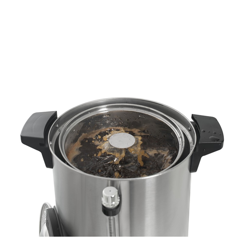 Кофеварка-перколятор Foodatlas WB-DWC6L предназначен для подогрева воды и приготовления горячих напитков на предприятиях общественного питания и торговли, а также в домашних условиях. Модель оснащена кабелем питания с вилкой, краном для розлива, крышкой с грибовидной рукояткой, боковыми транспортировочными рукоятками и электромеханическим управлением. Корпус цилиндрической формы, крышка и фильтр выполнены из высококачественной нержавеющей стали, фурнитура – из черного пластика, упаковка – картонная коробка.
