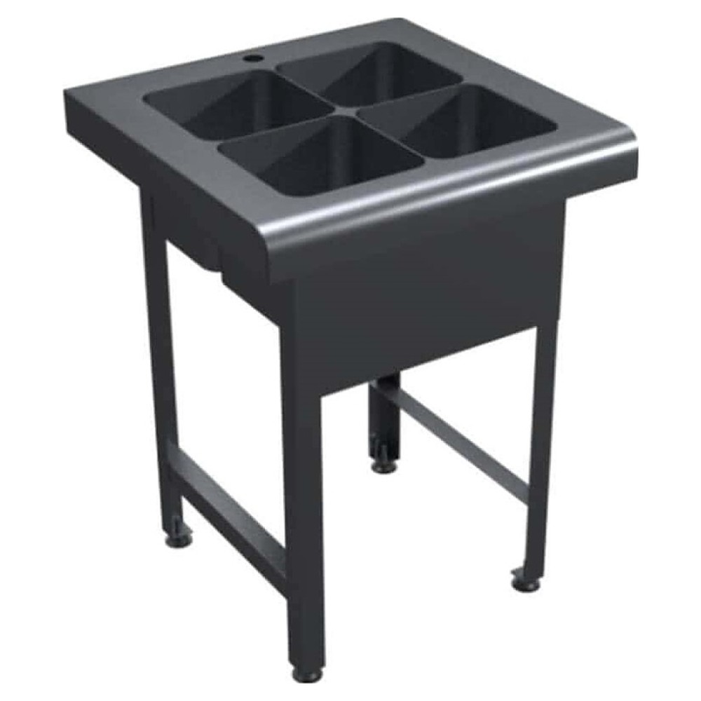 Напольная моечная ванна Oceanus 7-005.1 предназначена для мытья различного инвентаря на предприятиях общественного питания и торговли. Модель оснащена 4 раковинами прямоугольного сечения, невысоким фартуком с радиальным гибом с фронтальной стороны, отверстием под смеситель и 4 опорами. Изделие выполнено из высококачественной нержавеющей стали марки AISI 304 серебристого оттенка с матовой поверхностью.