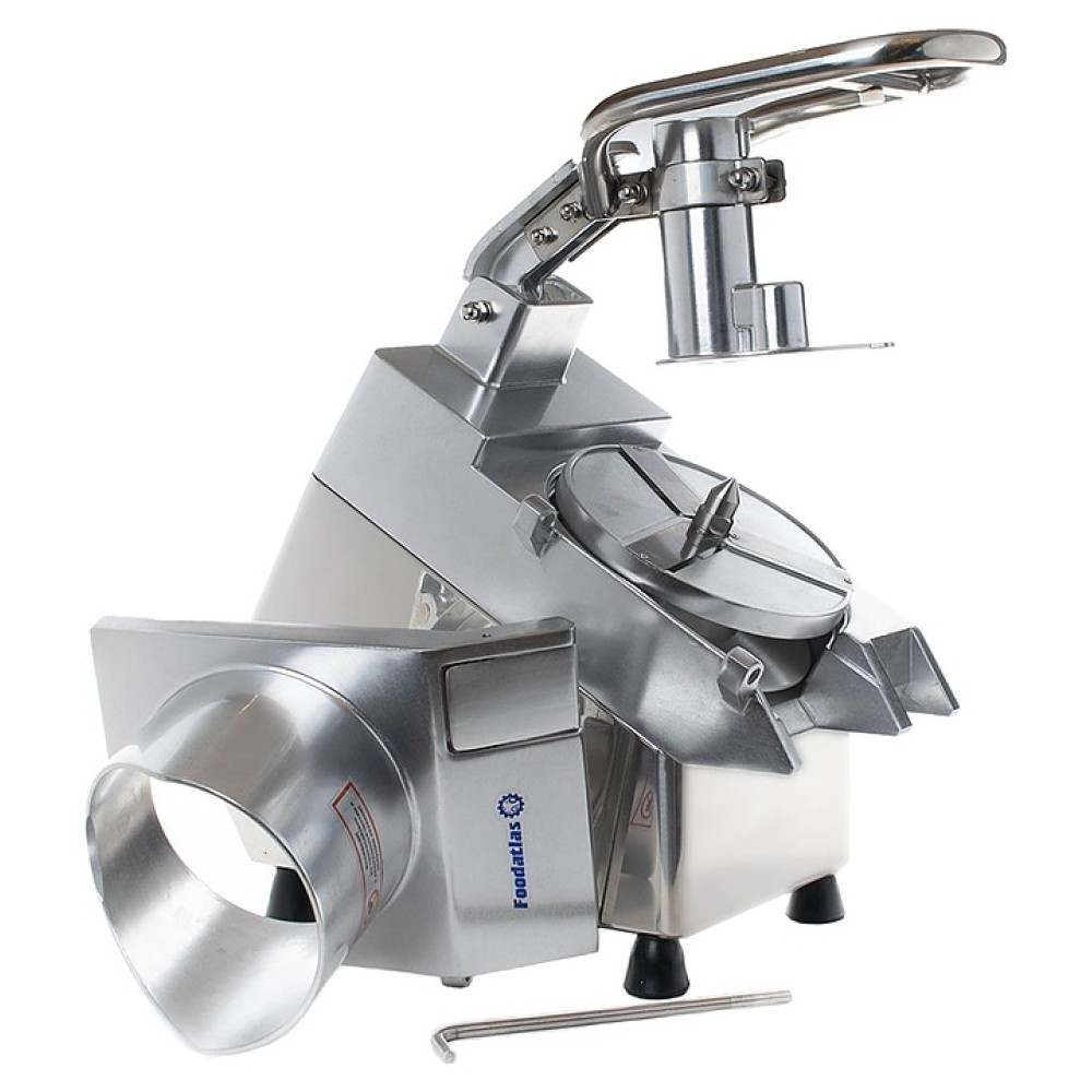 Настольная электрическая овощерезка Foodatlas QC205A используется на предприятиях пищевой промышленности, общественного питания и торговли для нарезки корнеплодов, твердых овощей и фруктов, а также твердого сыра, колбас и других аналогичных продуктов. Модель оснащена наклонной загрузочной горловиной и механическим толкателем с дугообразной рукояткой. Корпус и емкость выполнены из алюминия с полированной серебристой поверхностью, ножи – из высококачественной нержавеющей стали, упаковка – картонная коробка.