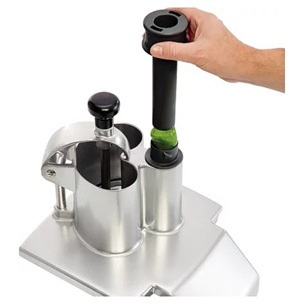 Овощерезка Robot Coupe CL50 используется на предприятиях общественного питания и торговли для нарезки овощей, фруктов, грибов, твердого сыра и колбас и дальнейшего использования их в качестве ингредиентов для приготовления супов, салатов, гарниров и пр. Модель оснащена 2 загрузочными отверстиями: большой D-образной воронкой для нарезки объёмных овощей (вмещает до 10 помидоров) и круглой - для длинных и нежных.