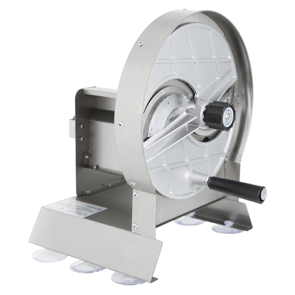 Овощерезка-слайсер SL-02 SL-02 используется на предприятиях общественного питания и торговли для нарезки овощей и фруктов и дальнейшего использования их в качестве ингредиентов для приготовления супов, салатов, гарниров и пр. Корпус и лезвие выполнены из нержавеющей стали.