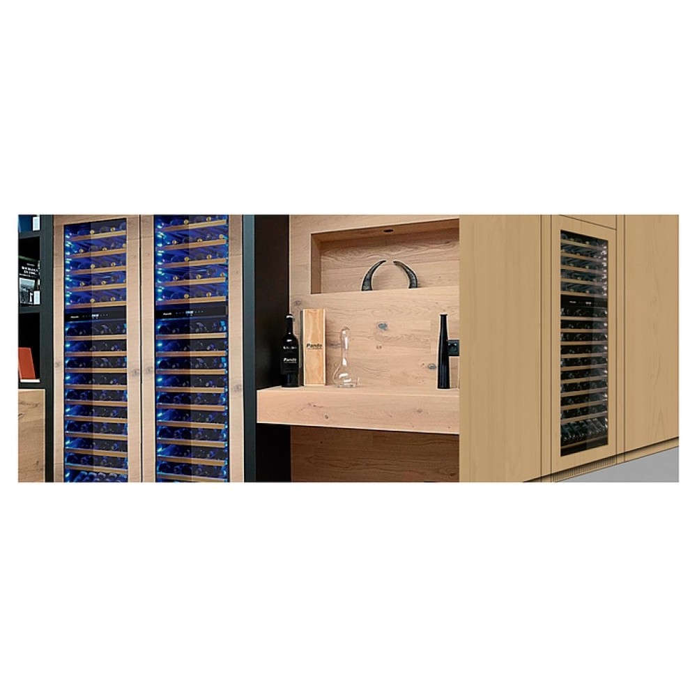 Винный шкаф Pando PVMA 178-112 PAR предназначен для хранения при оптимальных условиях и предпродажной демонстрации бутилированного вина различных сортов в барах, ресторанах, специализированных магазинах, подсобных складских помещениях, а также домашних условиях. Модель оснащена холодильной камерой с 2 температурными зонами, правосторонней распашной дверью, внутренней сенсорной панелью управления и светодиодными цифровыми дисплеями с голубой подсветкой индикации. Корпус и рама двери выполнены из стали с антикоррозийным покрытием, остекление двери – из закаленного стекла с прозрачной дымчатой тонировкой, внутренняя облицовка камеры черного цвета, полки – из массива буковой древесины.