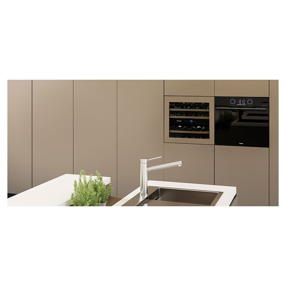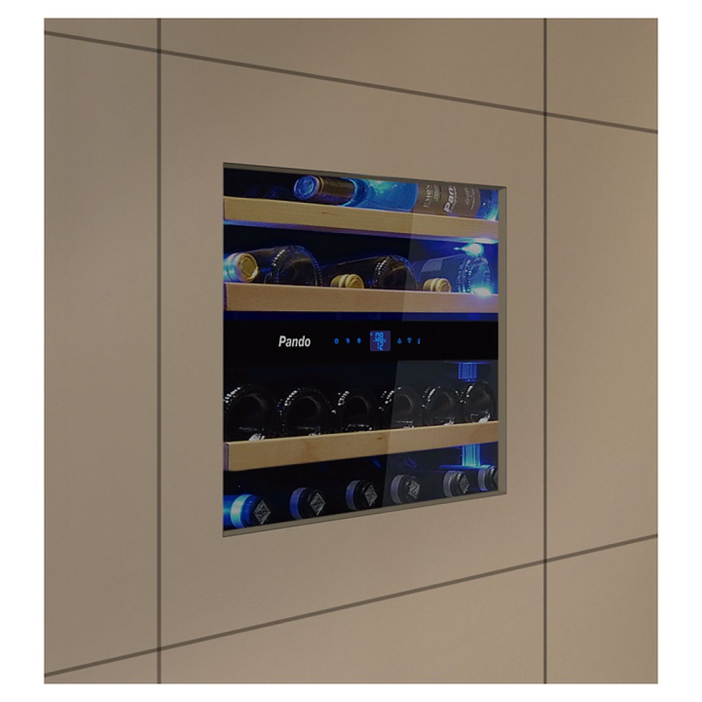 Винный шкаф Pando PVMAP 60-25 PAL предназначен для хранения при оптимальных условиях и предпродажной демонстрации бутилированного вина различных сортов в барах, ресторанах, специализированных магазинах, подсобных складских помещениях, а также домашних условиях. Модель оснащена холодильной камерой с 2 температурными зонами, левосторонней распашной дверью, внутренней сенсорной панелью управления и светодиодными цифровыми дисплеями с голубой подсветкой индикации. Корпус и рама двери выполнены из стали с антикоррозийным покрытием, остекление двери – из закаленного стекла с прозрачной дымчатой тонировкой, внутренняя облицовка камеры черного цвета, полки – из массива буковой древесины.