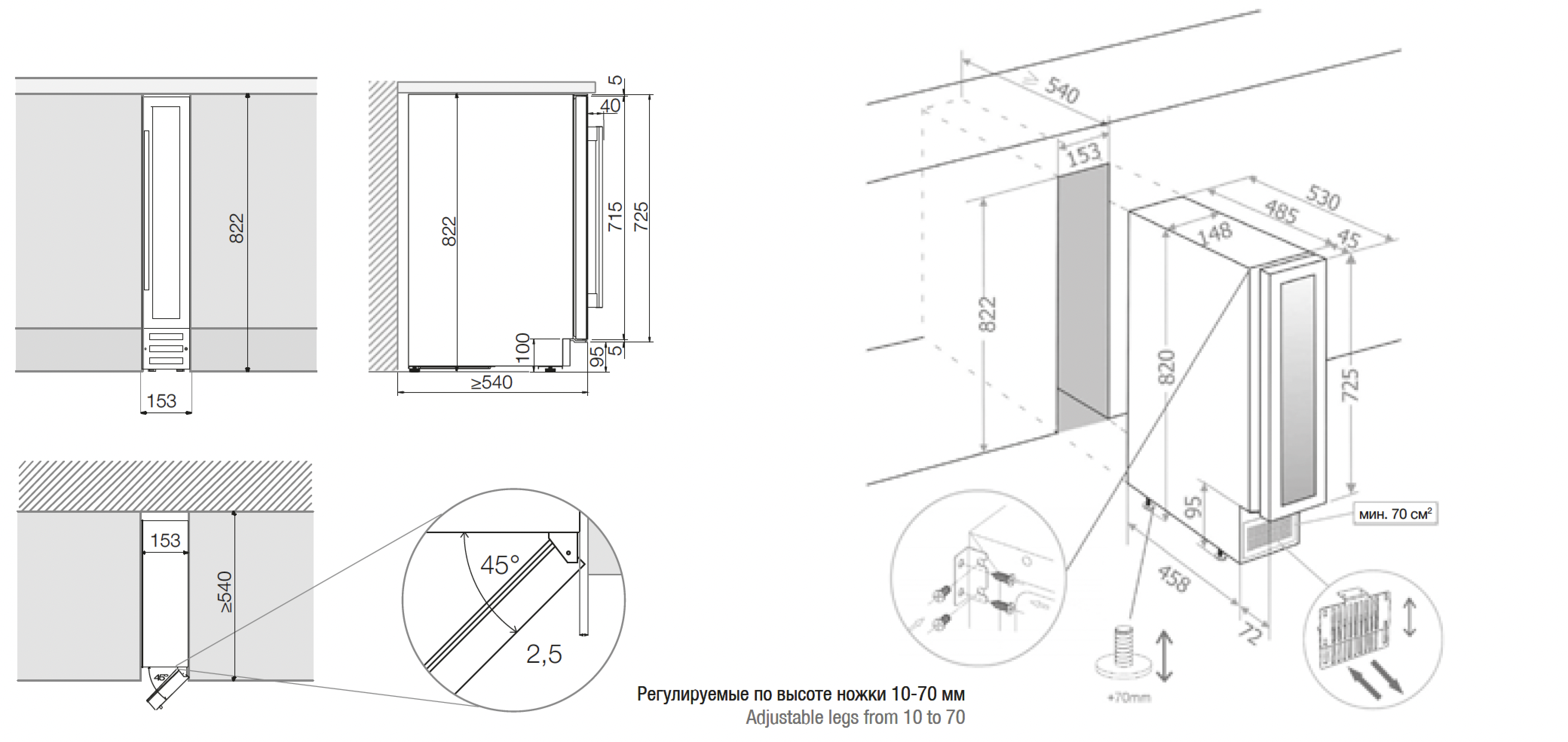 | Высота825 мм | Глубина525 мм | Ширина150 мм |