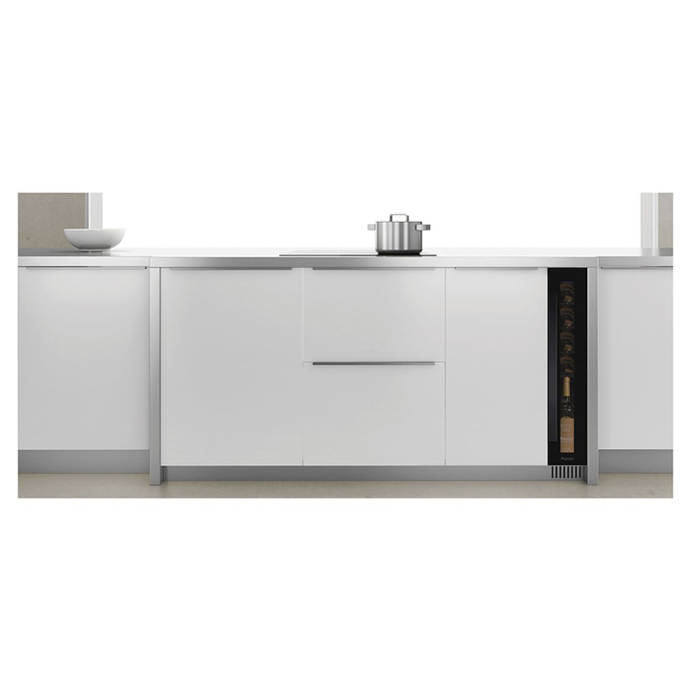 Винный шкаф Pando PVZB 15-9 CRR предназначен для хранения при оптимальных условиях и предпродажной демонстрации бутилированного вина различных сортов в барах, ресторанах, специализированных магазинах, подсобных складских помещениях, а также домашних условиях. Модель оснащена монотемпературной холодильной камерой с правосторонней распашной дверью, вертикальной рукояткой, внутренней сенсорной панелью управления и светодиодным цифровым дисплеем с голубой подсветкой индикации. Корпус выполнен из стали с антикоррозийным покрытием черного цвета, дверь с полным фронтальным остеклением без винтового крепежа из закаленного стекла с прозрачной дымчатой тонировкой, рукоятка – из анодированного алюминия с черной поверхностью, внутренняя облицовка камеры черного цвета, полки – из массива буковой древесины.
