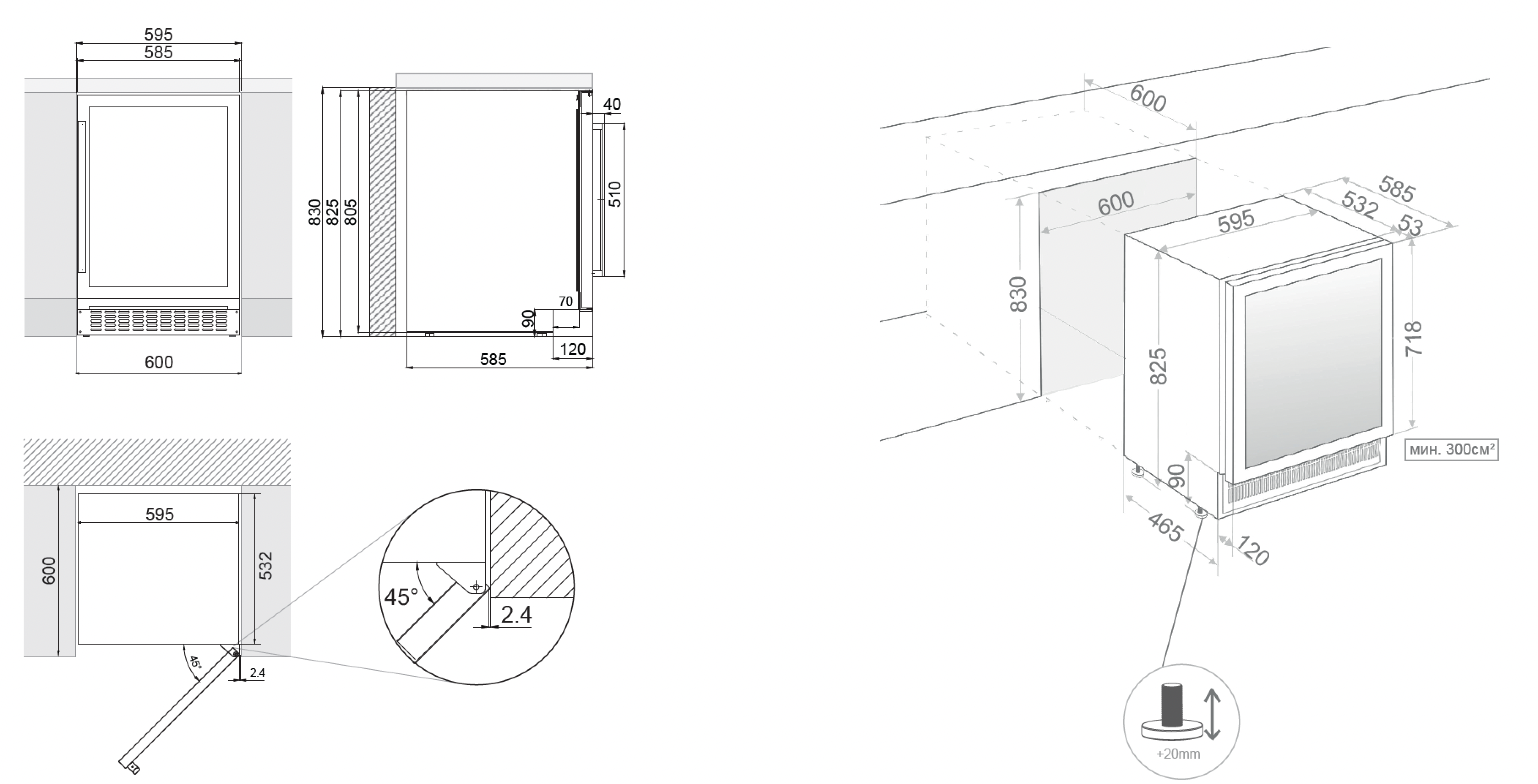 | Высота825 мм | Глубина585 мм | Ширина595 мм |