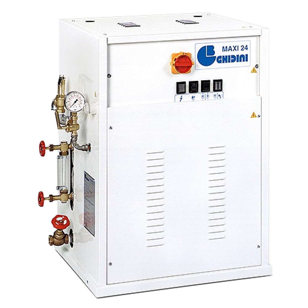 Парогенератор Ghidini Maxi 24 используется в прачечных, отелях, гостевых домах и офисах для влажно-тепловой обработки белья и одежды. Модель оснащена 6 независимыми наборами нагревательных элементов.