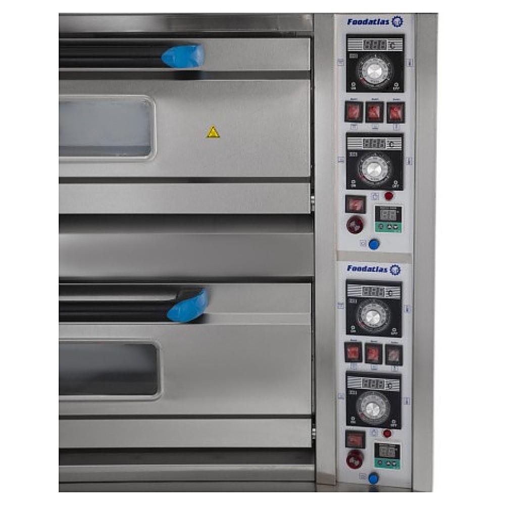 Хлебопекарная печь Foodatlas HEO-24 используется на предприятиях общественного питания и торговли для выпечки широкого ассортимента хлебобулочных и кондитерских изделий: хлеба пшеничного, ржано-пшеничного формового и подового, хлебобулочной продукции, мучных кондитерских изделий, просфор, куличей и приготовления мясных, рыбных, овощных и других блюд. Модель оснащена 2 камерами, электромеханической панелью управления, внутренней подсветкой и дверями со смотровыми окнами, позволяющими контролировать рабочий процесс. Корпус выполнен из нержавеющей стали и утеплен современными теплоизоляционными материалами, дверцы - из нержавеющей стали и стекла.