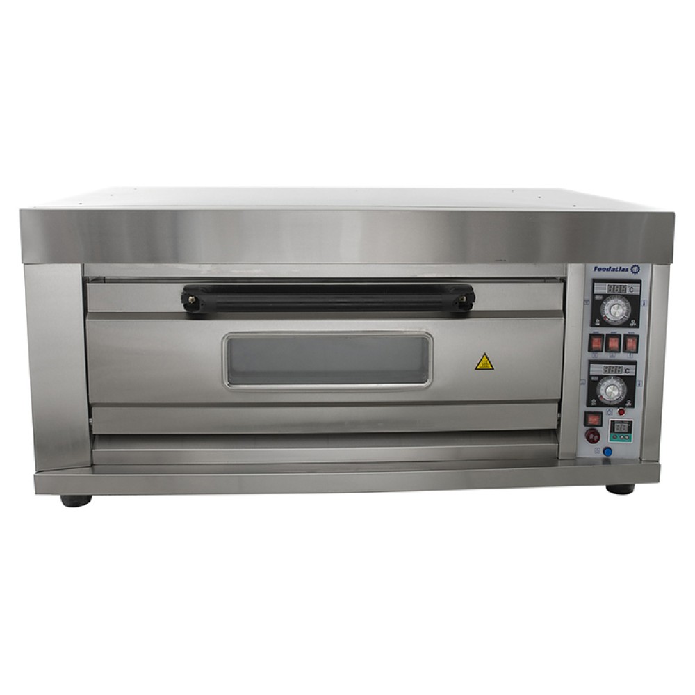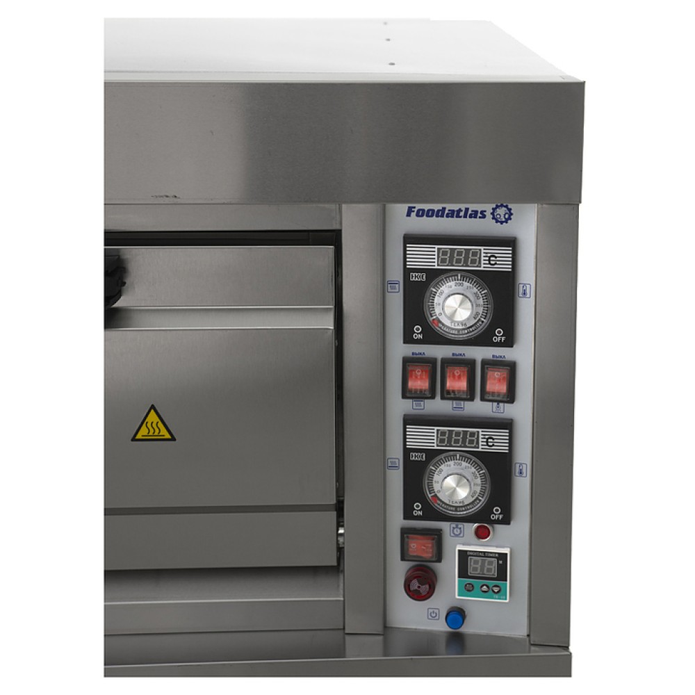 Хлебопекарная печь Foodatlas HEO-750 используется на предприятиях общественного питания и торговли для выпечки широкого ассортимента хлебобулочных и кондитерских изделий, приготовления мясных, рыбных, овощных и других блюд. Модель оснащена электромеханической панелью управления с 2 регуляторами температуры и световыми индикаторами нагрева, внутренней подсветкой и дверцей со смотровым окном, позволяющим контролировать рабочий процесс. Корпус выполнен из нержавеющей стали с теплоизоляцией современными материалами, дверца - из нержавеющей стали и стекла.
