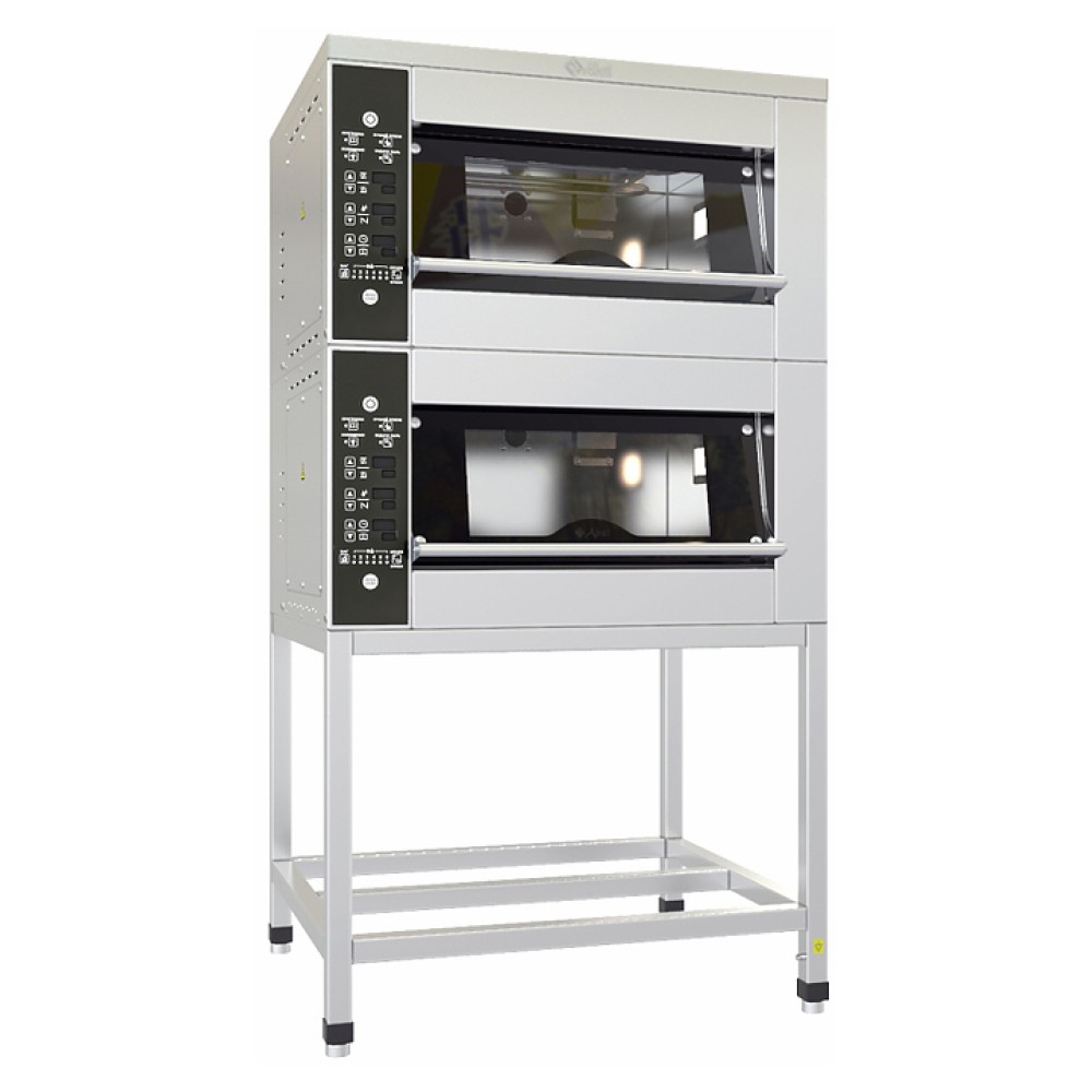 Печь подовая Abat ЭШП-2-01КП 1EN Super Tower предназначена для приготовления хлебобулочных и кондитерских изделий на предприятиях общественного питания и торговли самостоятельно или в составе технологической линии. Модель оснащена парогенератором и каменным подом, электронной панелью управления, таймером до 10 часов и регулируемыми по высоте ножками. Бескаркасная конструкция и ТЭНы выполнены из аустенитной нержавеющей стали, дверь - из нержавеющей стали со смотровым окном из термостойкого стекла, под - из жаропрочного природного камня - кордиерита, обеспечивающего оптимальный температурный режим для выпечки.
