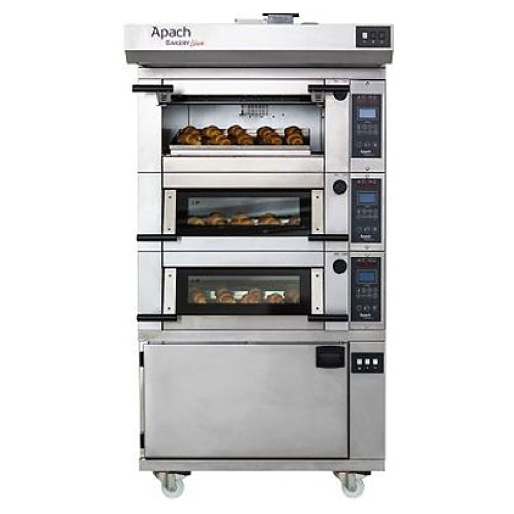 Подовая печь Apach Bakery Line E2K4P DPBI-T используется на предприятиях пищевой промышленности, общественного питания и торговли, в пекарнях и кондитерских для приготовления различных блюд, выпечки хлебобулочных и кондитерских изделий. Модель оснащена цифровой панелью управления с раздельным контролем температур (верх/низ) и расстойкой. Козырек, передняя и наружная части печи выполнены из нержавеющей стали, основание - из цементного агломерата с металлическим каркасом, дверь - из стекла, каркас основания - из металла, теплоизоляция - из минеральной ваты.