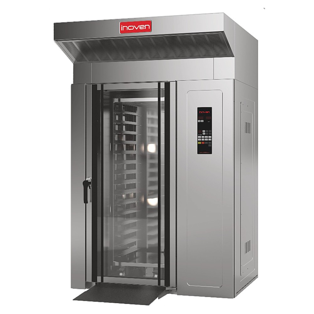 Ротационная конвекционная печь Inoven AYF-15 E используется на предприятиях пищевой промышленности и в пекарнях для выпечки хлебобулочных и мучных кондитерских изделий. Модель оснащена системой вращения, цифровой панелью на 9 программ, защитой от колебаний напряжения, высококачественной теплоизоляцией.