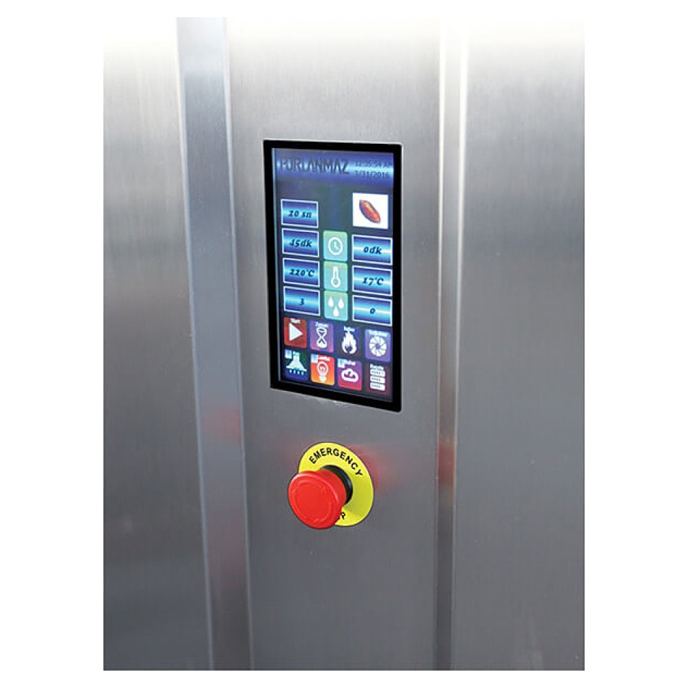 Ротационная газовая печь Porlanmaz Bakery Machinery PMDF 150F применяется на профессиональных кухнях пекарен и кондитерских для выпекания разнообразных хлеба, булочек, кексов, коржей, бисквитов, печенья, пироженых, круассанов и других изделий из теста. Модель оснащена лампами освещения на дверях кабины печи, которые легко заменяются снаружи. Камера сгорания выполнена из нержавеющей стали с выносливостью больше 1000 градусов тепла.