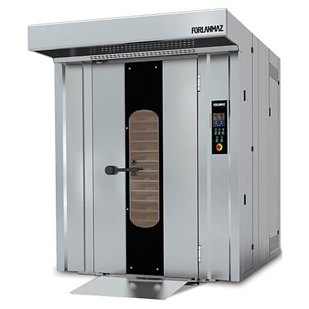 Ротационная печь Porlanmaz Bakery Machinery PMDF 200 применяется на профессиональных кухнях пекарен и кондитерских для выпекания хлеба, булочек, кексов, коржей, бисквитов, печенья, пироженых, круассанов и других изделий из теста. Модель оснащена лампами освещения на дверях кабины печи, которые легко заменяются снаружи. Камера сгорания выполнена из нержавеющей стали, с выносливостью больше 1000 градусов тепла.