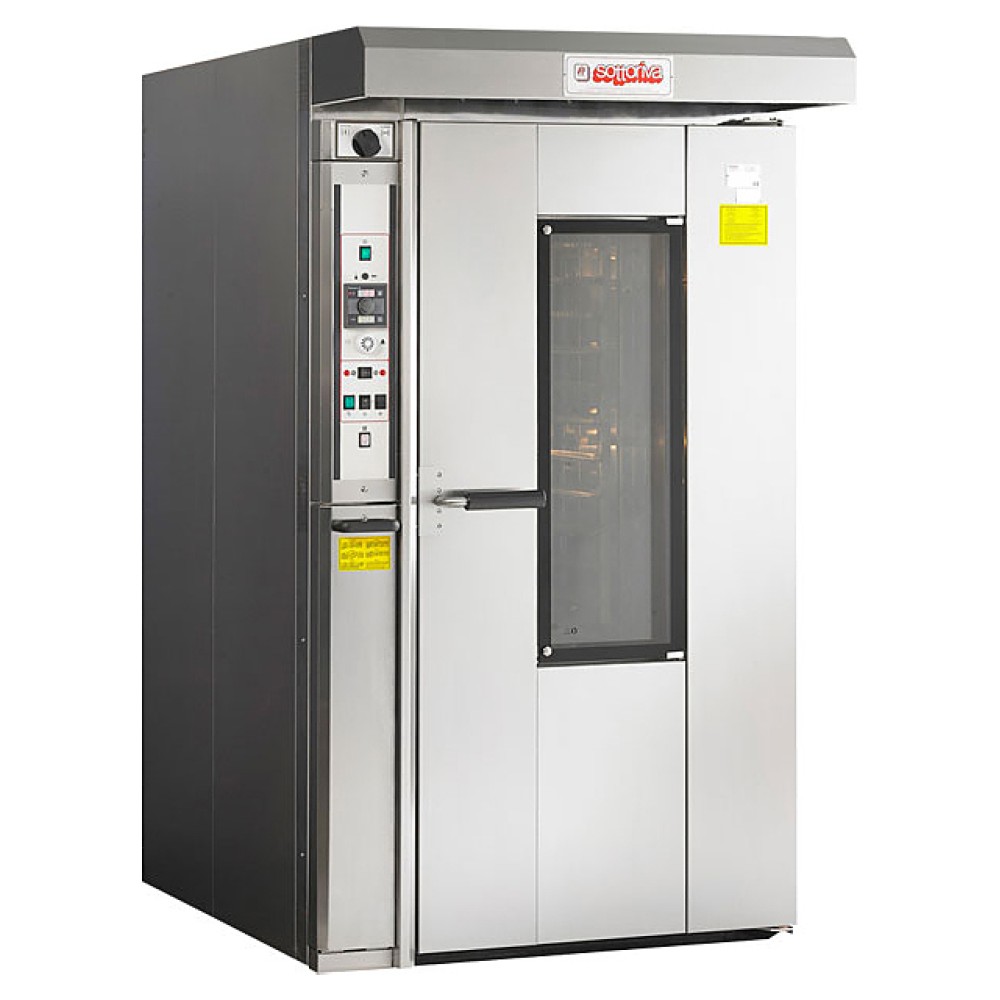 Ротационная печь Sottoriva QUASAR COMPACT TOP 40X60 используется на предприятиях пищевой промышленности, общественного питания и торговли для выпечки кондитерских изделий. Модель оснащена электромеханической панелью управления, вытяжкой для пара,ТЭНами повышенной мощности, 2-х скоростным вентилятором, аварийным термостатом, инжектором пара, дверцей со съемным двойным стеклом и 2 галогеновыми лампами. Камера и фасад выполнены из нержавеющей стали.