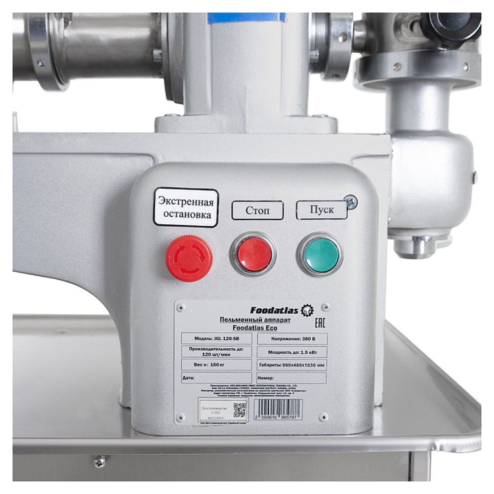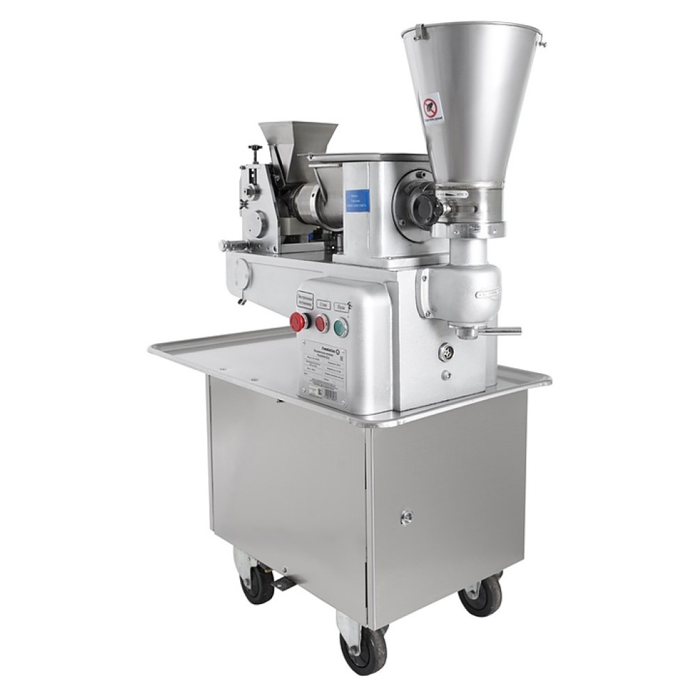 Пельменный аппарат Foodatlas JGL 120-5B Eco используется на предприятиях общественного питания и торговли для производства замороженных мясных полуфабрикатов в составе пельменной линии. Модель оснащена опорными колесами с стстемой стопорных механизмов. Станина выполнена из чугуна.