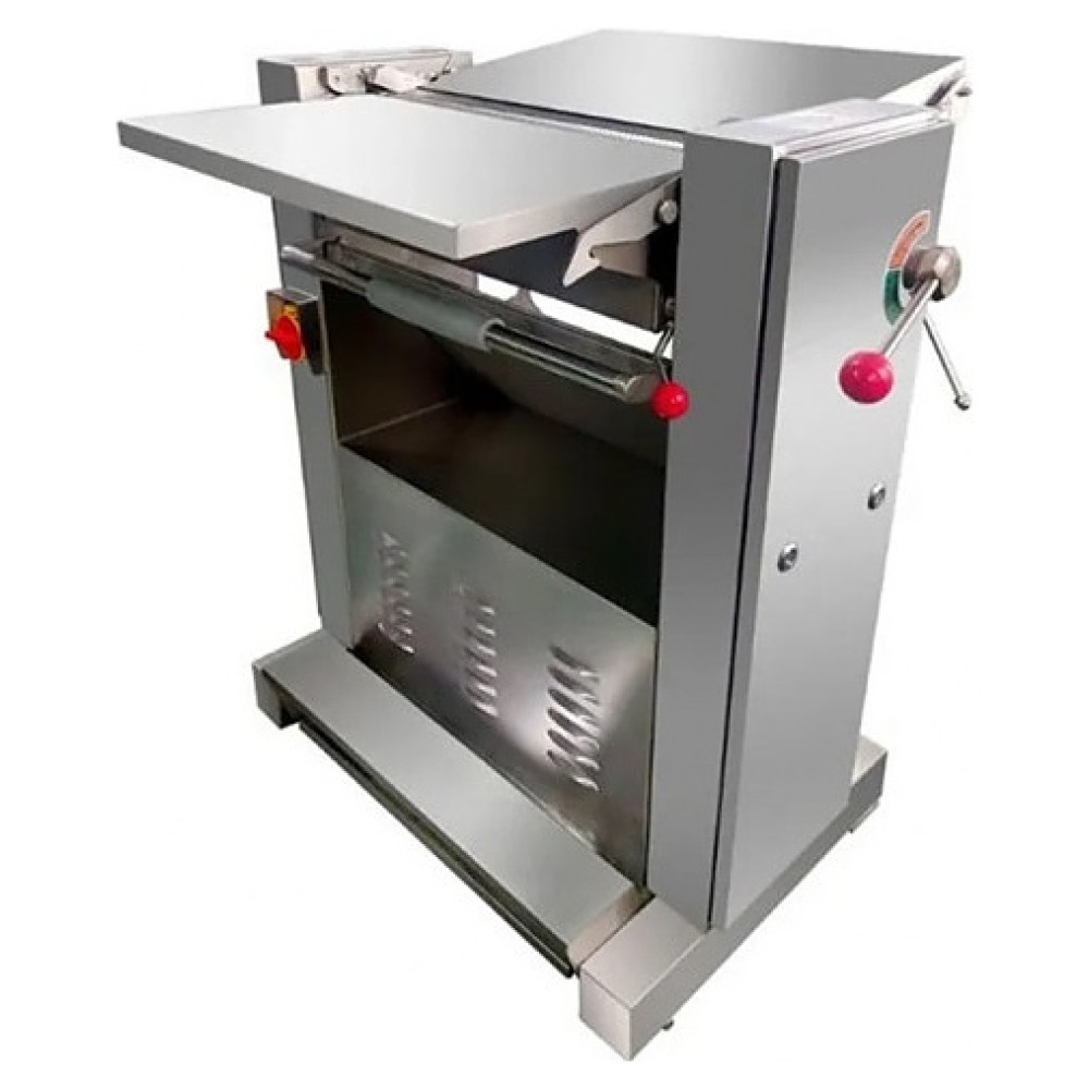 Напольная шкуросъемная машина Roal Meat NSQP-435 используется в фермерских хозяйствах и на предприятиях пищевой промышленности для механизации процесса обесшкуривания крупных кусков свинины и домашней птицы, а также пластования шпика. Модель оснащена системой фиксации ножей с амортизацией.