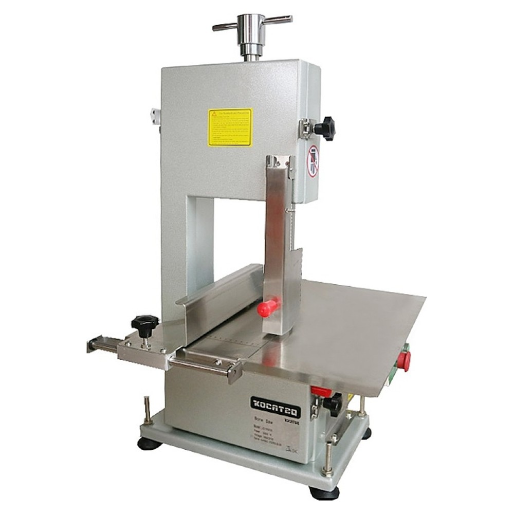 Настольная ленточная пила для мяса Kocateq JG1830E используется на предприятиях общественного питания и торговли для ровной и быстрой распиловки замороженного и свежего мяса и костей на куски. Корпус выполнен из эмалированной нержавеющей стали, контактирующие с продуктом компоненты – из нержавеющей стали AISI 202.