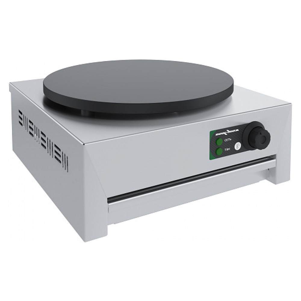 Блинница ПищТех БЛ-1 предназначена для приготовления блинов на предприятиях общественного питания и торговли. Модель оснащена терморегулятором с термодатчиком, световым индикатором нагрева и нескользящими опорами. Корпус выполнен из нержавеющей стали, нижняя крышка и корпус утепления нагревателей - из оцинкованной стали.