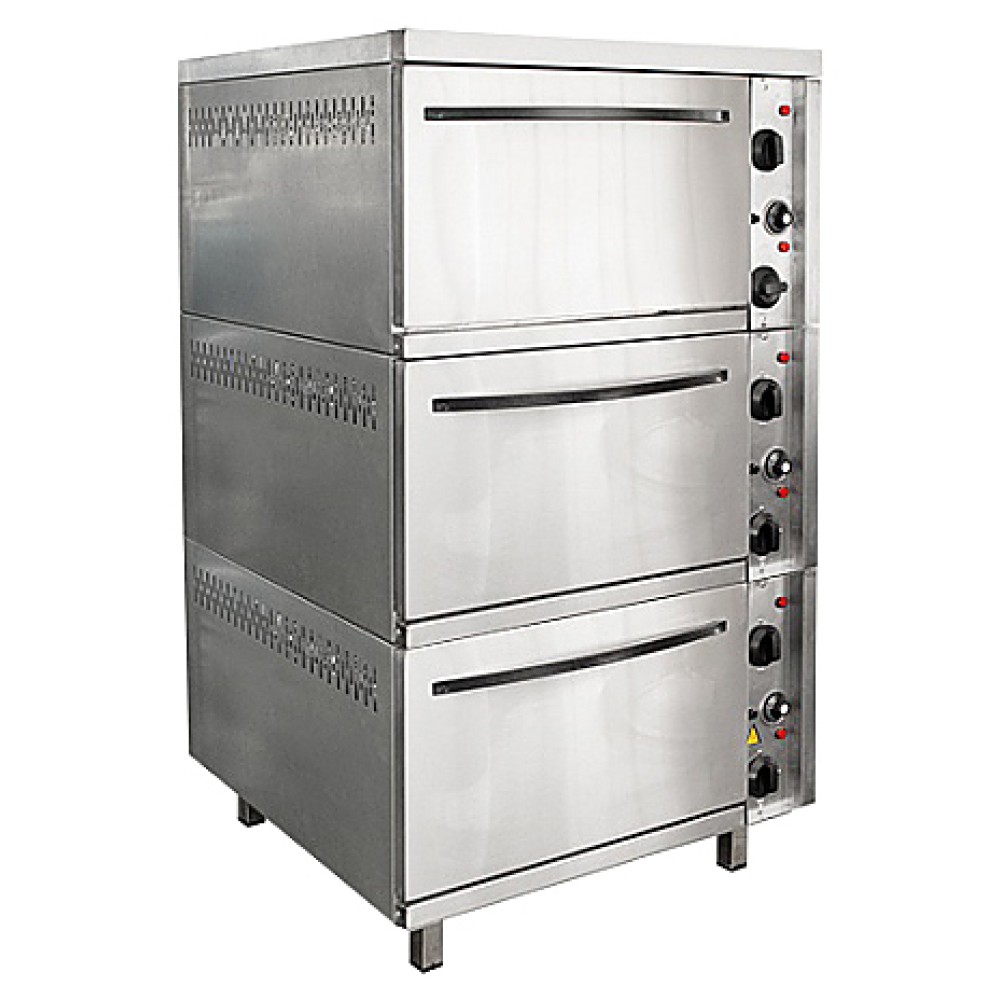 Жарочный шкаф Пищевые Технологии ШЭЖП-3-Н предназначен для приготовления первых, вторых и третьих блюд, а также выпечки хлебобулочных изделий на предприятиях общественного питания и торговли. Модель оснащена камерой из стального короба со съемными направляющими для противней, подовым листом, верхним и нижним блоками ТЭНов, аварийным предохранителем от перегрева и регулируемыми по высоте ножками. Вся обшивка выполнена из нержавеющей стали, внутренняя часть духовки - из углеродистой стали, остальные элементы - из оцинкованной стали, теплоизоляция камер - из базальтового материала и алюминиевой фольги.