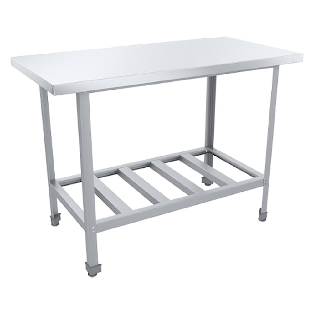 Разделочный стол Пищевые Технологии Стандарт СРО-14/6СЦК предназначен для разделки гастрономических продуктов перед их обработкой на предприятиях общественного питания. Модель оснащена регулируемыми по высоте ножками. Каркас выполнен из оцинкованного уголка, столешница - из нержавеющей стали AISI 430 с усилением из листа ЛДСП, полка-решетка - из нержавеющей стали AISI 430.