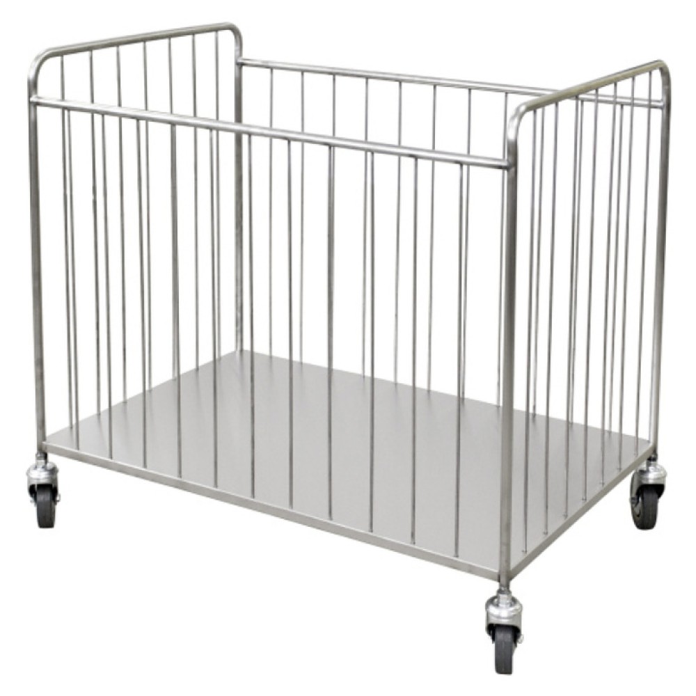 Тележка Пищевые Технологии ТБ-300 предназначена для временного хранения и транспортировки сухого грязного и чистого белья на предприятиях общественного питания, в медицинских, образовательных и спортивных учреждениях, а также в отелях и гостиницах. Модель состоит из дна, боковых ручек, перекладины и ограничительных прутков, вваренных между дном и трубами, а также 4 поворотных колес с обрезиненным ободом, позволяющим тележке легко маневрировать. Изделие выполнено полностью из нержавеющей стали.
