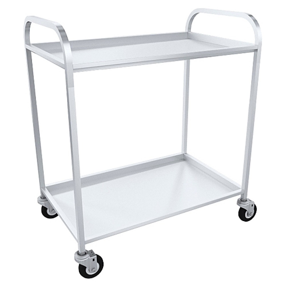 Сервировочная тележка Пищевые Технологии ТОН-2-01 предназначена для транспортировки готовых блюд, лекарств, приборов и тарелок на предприятиях пищевой промышленности, общественного питания и торговли, в гостинницах, отелях и больницах. Модель оснащена 2 полками и 4 поворотными колесами со стопором на одном из них. Каркас выполнен из 2-х труб квадратного сечения 20х20 мм из нержавеющей стали, полки - из нержавеющей стали.