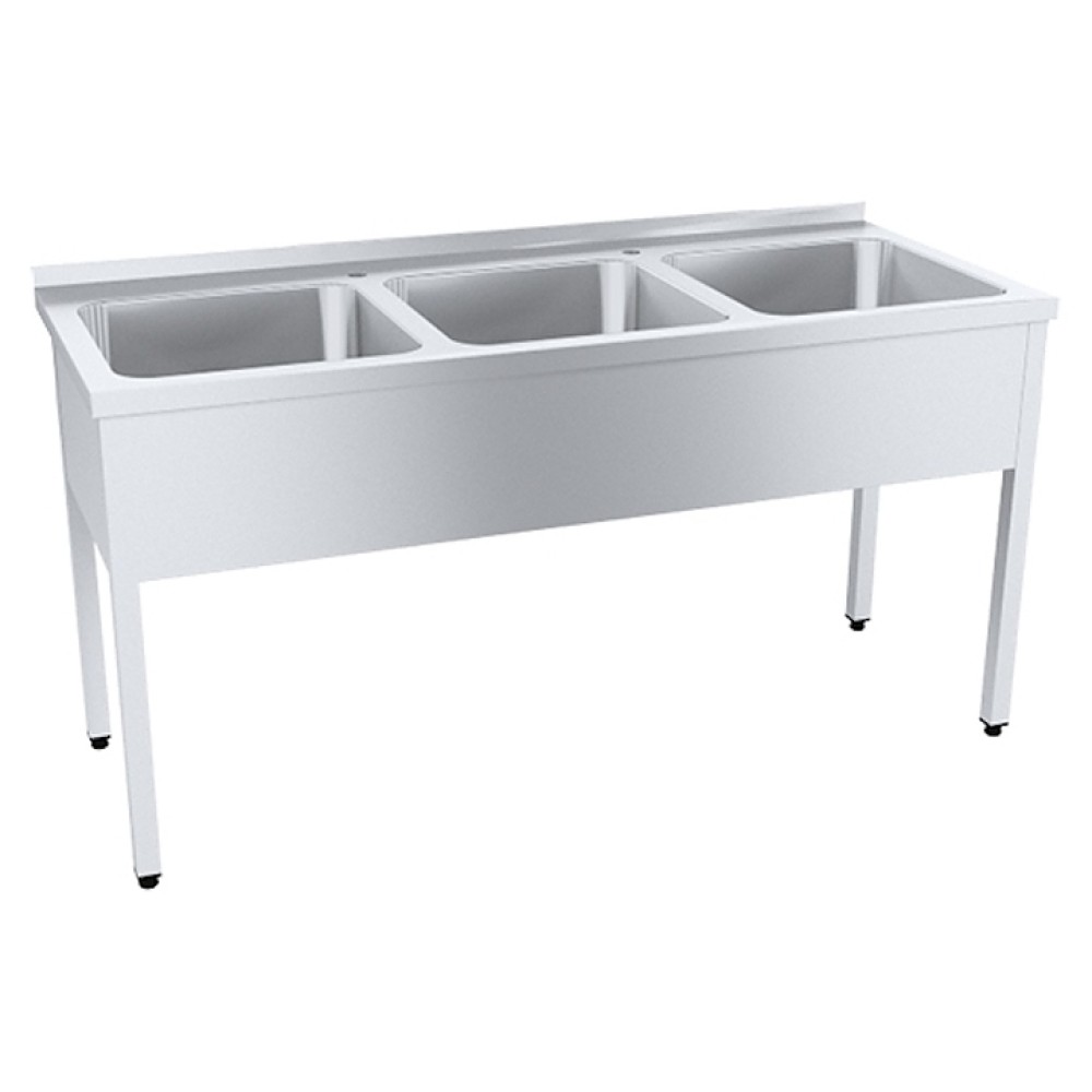 Моечная ванна Пищевые Технологии ПРОФИ ВМОцб3-400 ПНТ используется на предприятиях общественного питания и торговли для мытья посуды, овощей и фруктов. Модель оснащена бортом, 3 раковинами, 2 отверстиями для смесителя и для установки выпускного сифона и ножками с регуляторами высоты, позволяющими устранить неровность пола и придающими устойчивость конструкции. Каркас ванны выполнен из нержавеющей трубы, емкость - из нержавеющей стали AISI 304, упаковка - из гофрокартона.