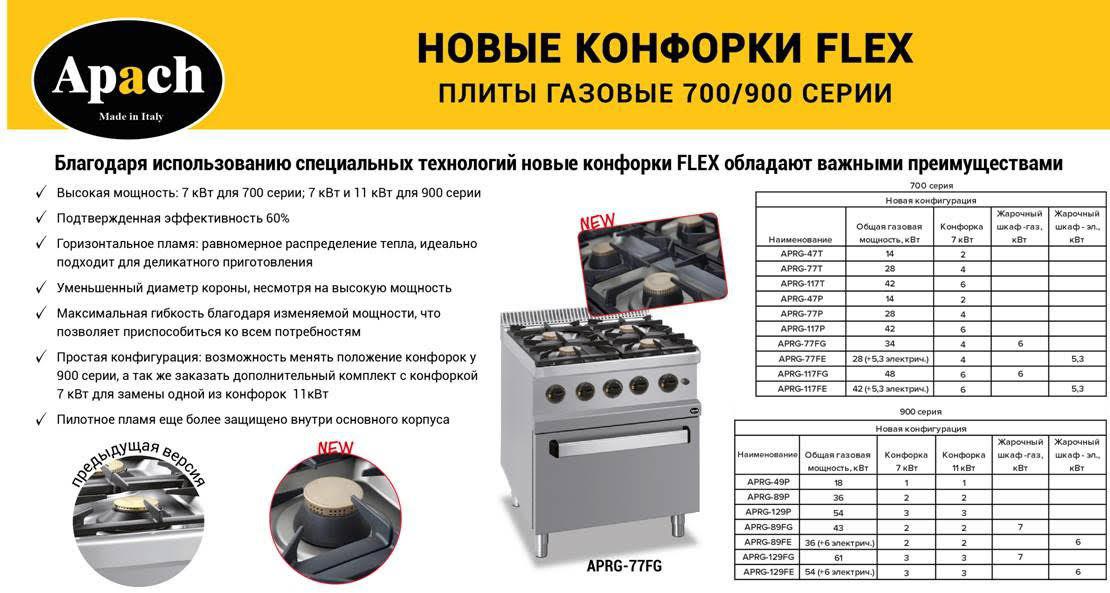 Газовая плита Apach APRG-129FM предназначена для различных видов тепловой обработки продуктов на предприятиях общественного питания. Модель оснащена газовыми горелками из глазированного чугуна, стабилизаторами пламени и системой автоподжига. На оборудовании сделаны заводские предустановки для подключения к магистральному газу, а также в комплект входят форсунки для перенастройки на баллонный газ.