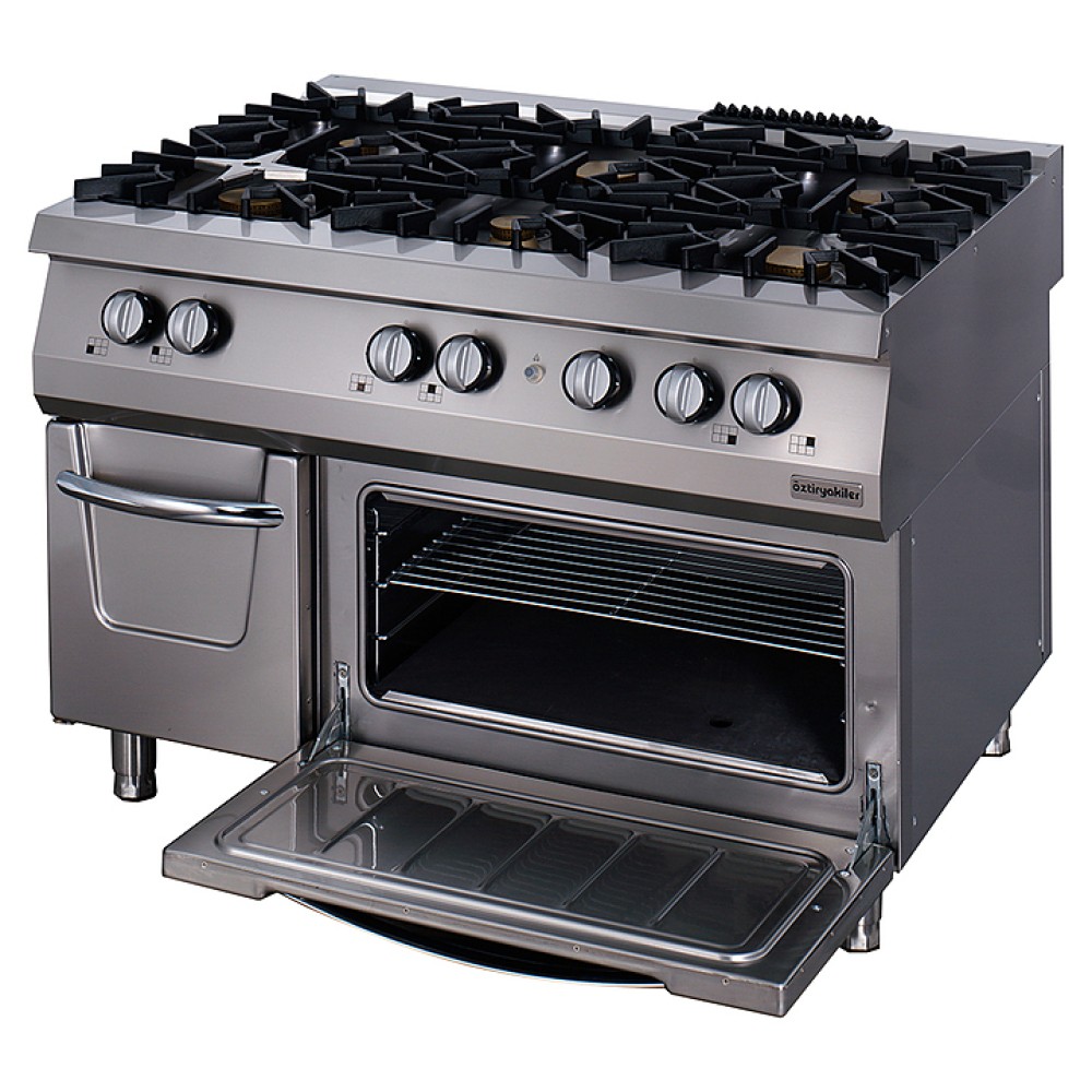 Газовая плита OZTI OSOGF 12090 предназначена для приготовления широкого спектра блюд в наплитной посуде и выпечки мелкоштучных кулинарных изделий на предприятиях общественного питания, а также в производственных цехах, деятельность которых связана с выпуском гастрономических товаров. Камера духового шкафа и дверца выполнены из нержавеющей стали AISI 430, горелки - из латуни, решетки - из полуглянцевого кислотностойкого чугуна.
