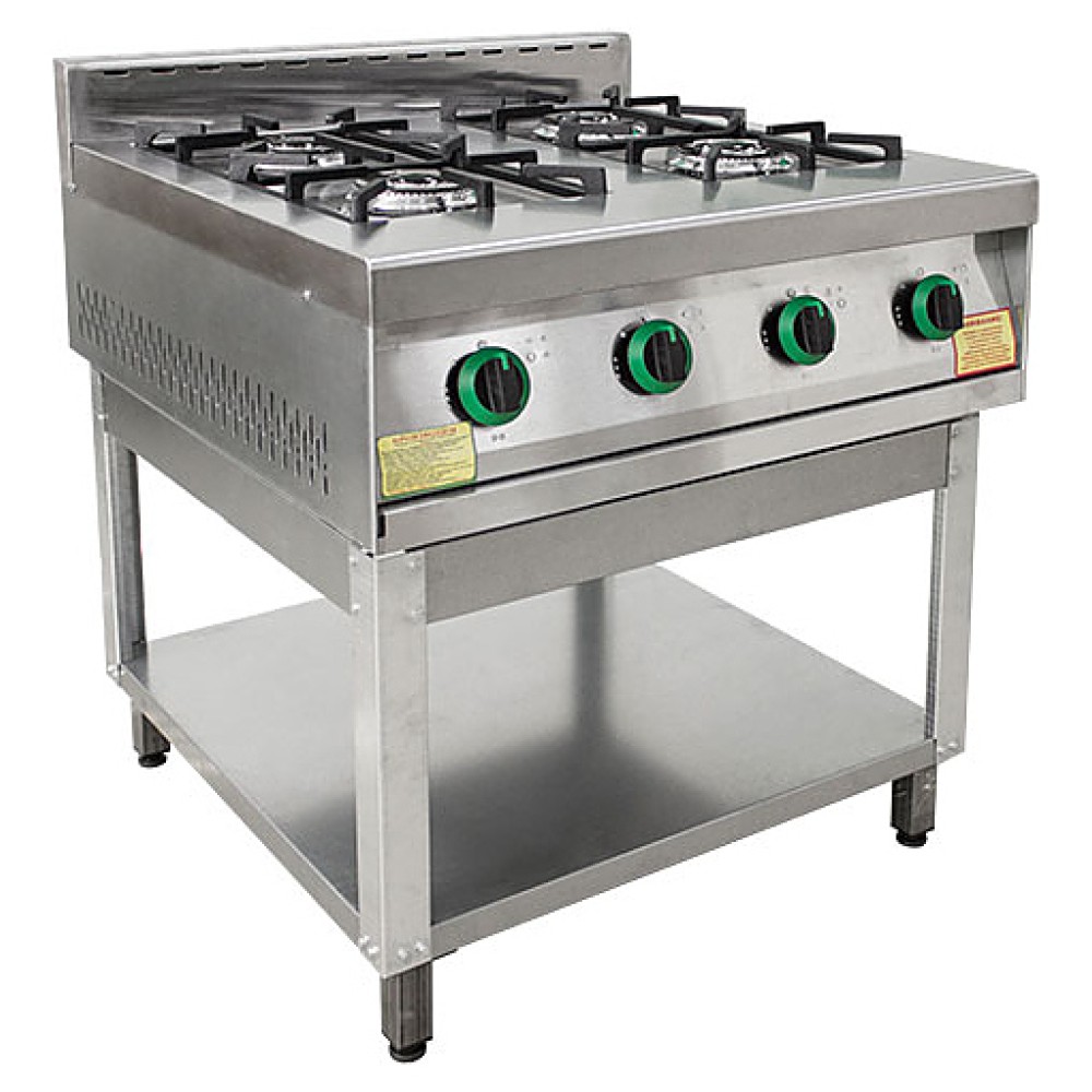 Газовая плита Пищевые Технологии ПГ-4-01 предназначена для приготовления первых, вторых и третьих блюд в наплитной посуде на предприятиях общественного питания и торговли. Модель может использоваться самостоятельно, а также в составе технологических линий. Основание, подставка, задние и боковые обшивки плиты выполнены из оцинкованной стали, каркас - сварен из квадратной трубы Ст3, окрашенной порошковой краской, верх плиты, вытяжка и пульт управления - из нержавеющей стали, решетки - из чугуна.