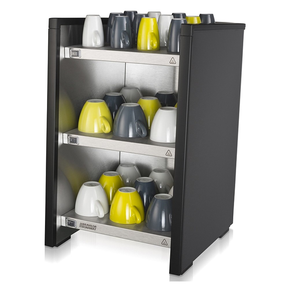 Подогреватель чашек Bravilor Bonamat WHK используется совместно с кофемашинами и кофеварками на предприятиях общественного питания и торговли. Модель оснащена 3 полками с раздельным подогревом. Корпус выполнен из нержавеющей стали.
