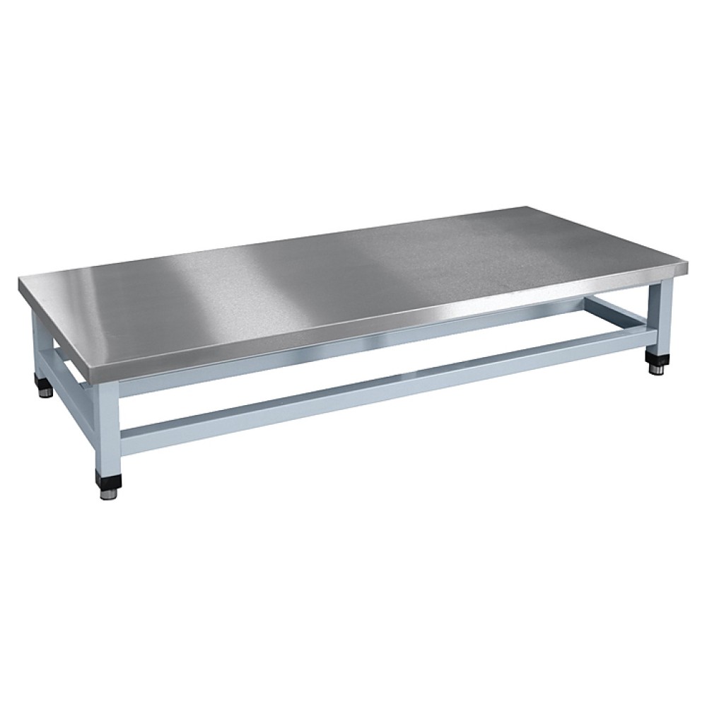 Конструкция разборная, столешница выполнена из высококачественной нержавеющей стали, каркас - из квадратной трубы, покрытой порошковой краской.