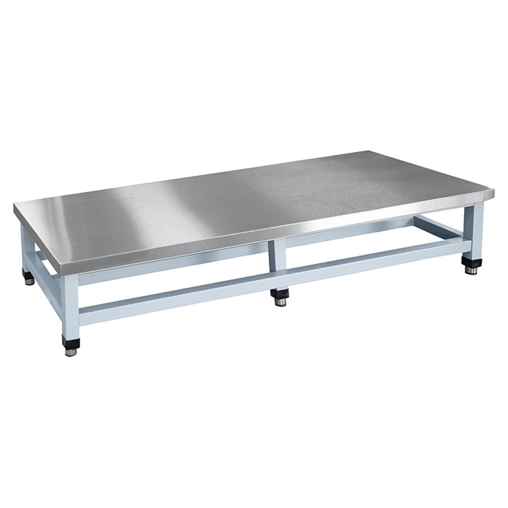 Конструкция разборная, столешница выполнена из высококачественной нержавеющей стали, каркас - из квадратной трубы, покрытой порошковой краской.