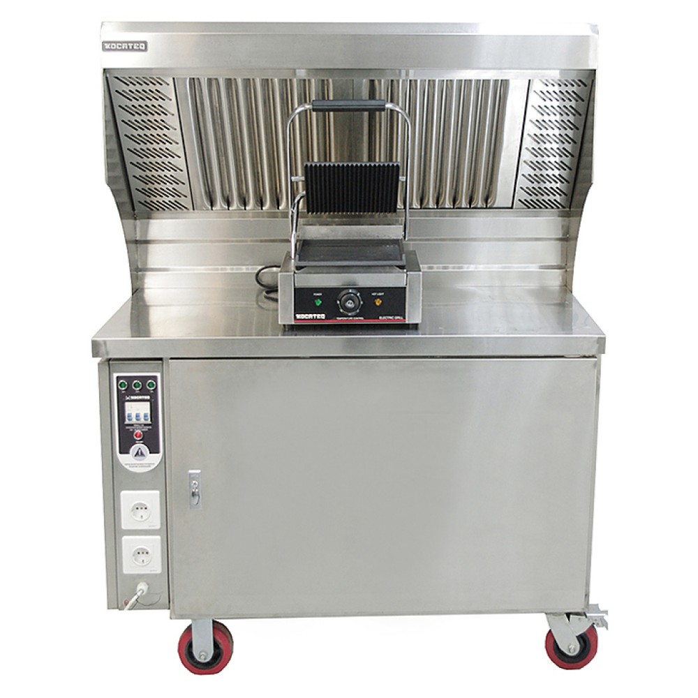 Пристенная подставка Kocateq VWALL VWALL 1100 предназначена для очистки воздуха от жира, масла, дыма и водяного пара на кухне на предприятиях общественного питания и торговли. Мощный вентилятор всасывает воздух из зоны готовки и после многостадийной очистки выбрасывает его под стенд. Очистка воздуха обеспечивается последовательно установленными лабиринтными фильтрами из нержавеющей стали, фильтром с активированным углем и электростатическим фильтром. Корпус выполнен из нержавеющей стали AISI201.