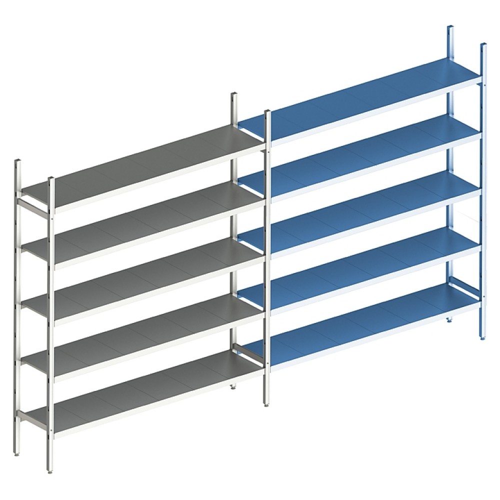 Модель представляет собой дополнительную линейную секцию модульной стеллажной системы и может стыковаться в линию с базовой и дополнительной угловой секциями.