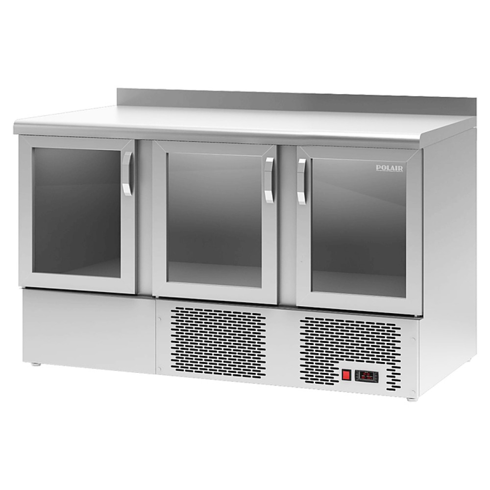Холодильный стол POLAIR TDi3-GC предназначен для хранения продуктов и обработки ингредиентов на рабочей поверхности на предприятиях общественного питания и торговли. Внешняя (кроме задней стенки) и внутренняя обшивка цельнозаливного корпуса выполнены из нержавеющей стали, обеспечивающей механическую прочность, термоизоляцию, герметичность и долговечность стола, двери - стеклопакеты в алюминиевой раме, теплоизоляция - из пенополиуретана, полки - из окрашенной оцинкованной проволоки, ручки - из алюминия. Оборудование рассчитано на работу при температуре окружающей среды до 32 °С.