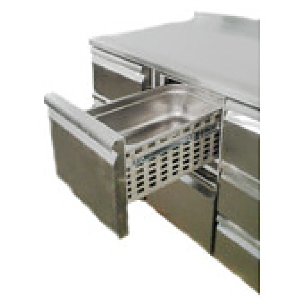Холодильный стол POLAIR TM2GN-G серии Grande предназначен для хранения продуктов и обработки ингредиентов на рабочей поверхности на предприятиях общественного питания и торговли. Цельнозаливной корпус и двери изготовлены из нержавеющей стали, обеспечивающей механическую прочность, термоизоляцию, герметичность и долговечность стола, полки - из окрашенной оцинкованной проволки. Оборудование рассчитано на работу при температуре окружающей среды до 43 °С и относительной влажности воздуха до 80%.