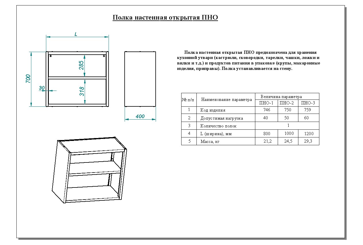 Кухонная полка Abat ПНО-1 предназначена для хранения посуды, кухонных принадлежностей и продуктов, не требующих специального температурного режима на предприятиях общественного питания и торговли.
