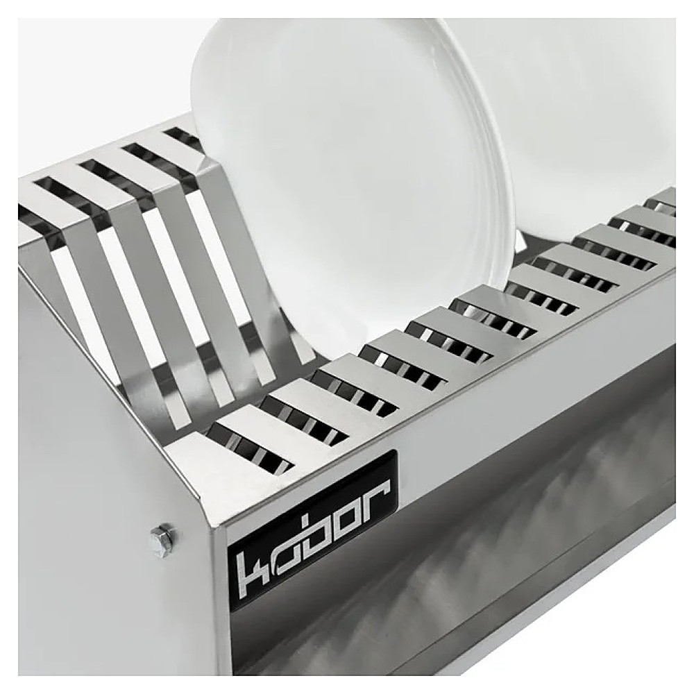 Полка Кобор ПКТ-90/30 состоит из широких ячеек, что помогает разместить 26 тарелок. Внизу полки находится специальный поддон для сбора воды.