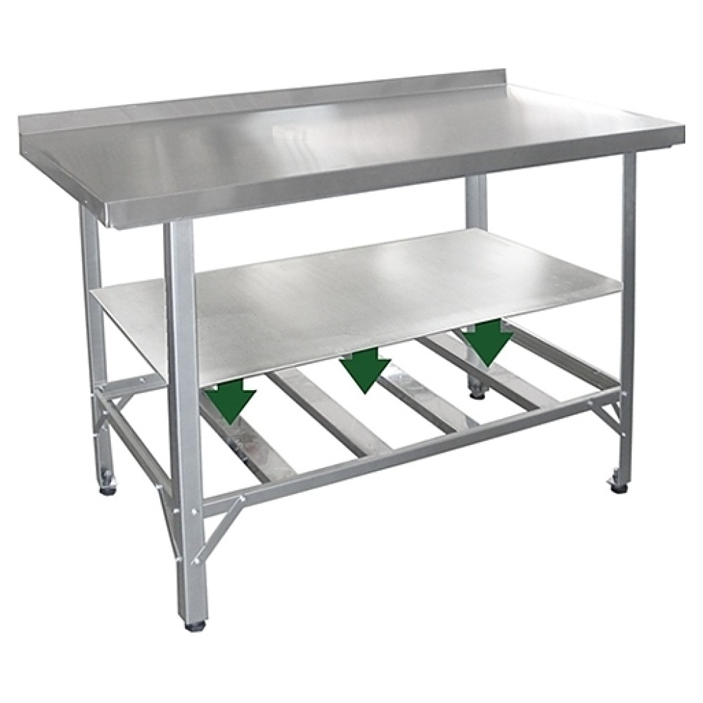 Сплошная полка Пищевые Технологии ЦК-СРО, СРО(б) используется совместно с производственными столами. Полка самостоятельно устанавливается поверх полки-решетки. Изделие выполнено из оцинкованной стали.